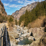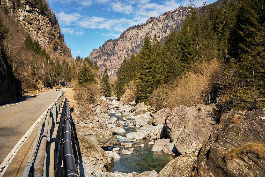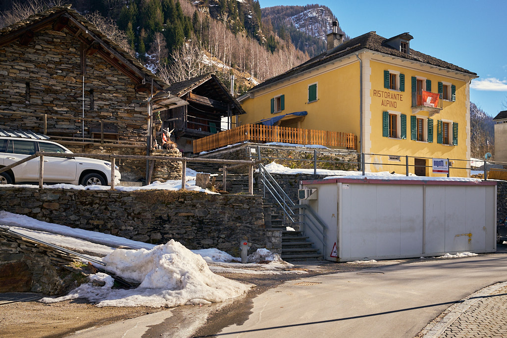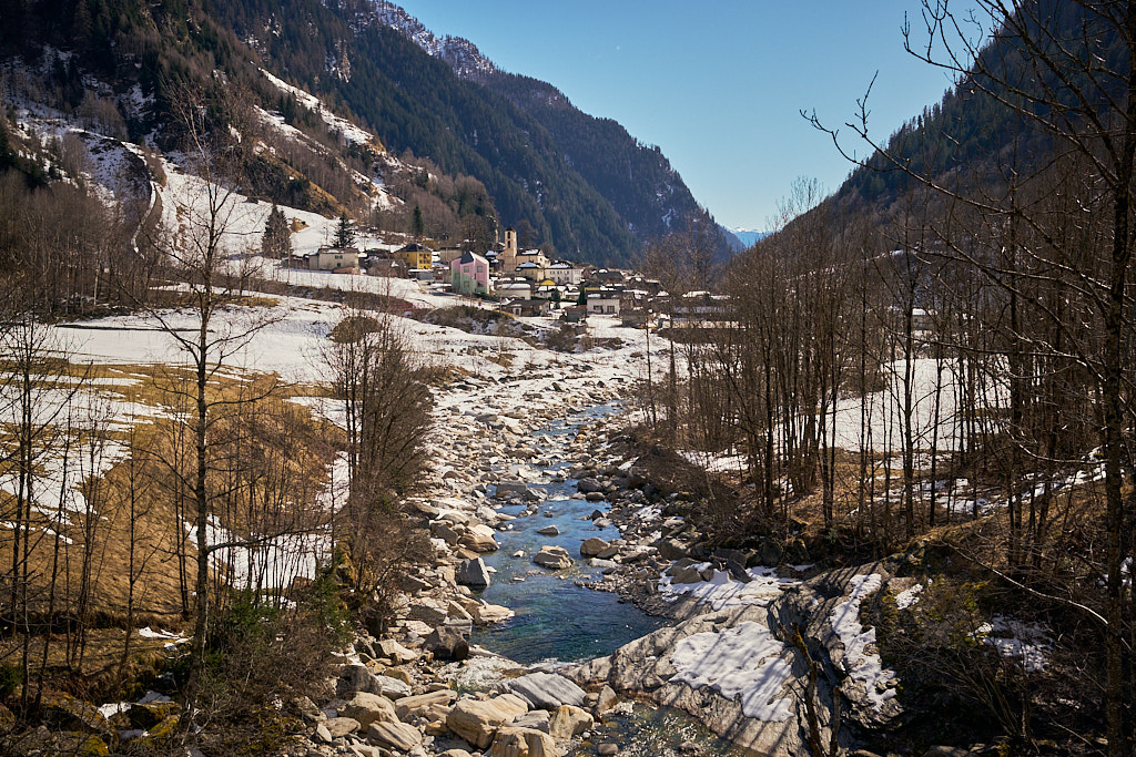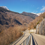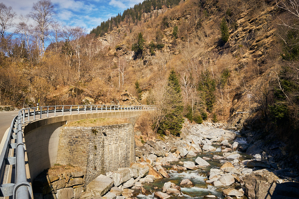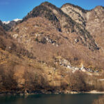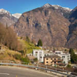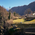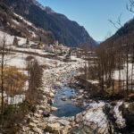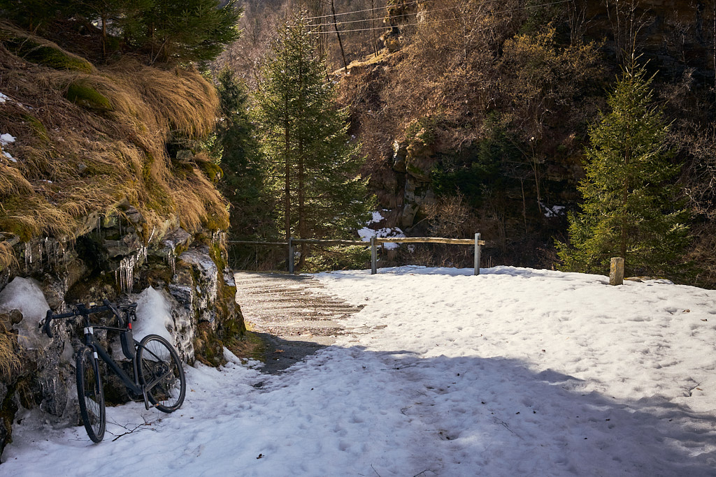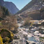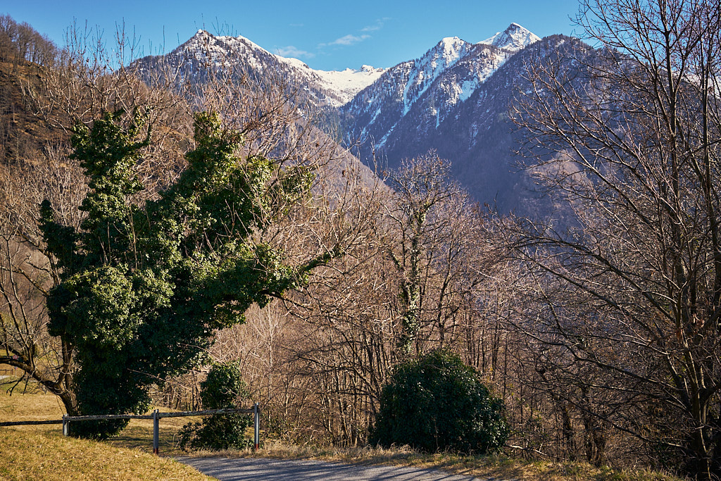 Von hier aus fuhr ich nun weiter in den mir unbekannten Teil des Calancatals. Das Tal war schneefrei, die Sonne schien, es hatte fast keinen Verkehr und die Fahrt entlang des Flusses Calancasca war dementsprechend entspannt und meditativ. Bald erreichte ich das nächste Dorf Arvigo, von wo aus eine kleine Seilbahn gerade nach Braggio hinauffuhr. Braggio ist offenbar auch über eine Strasse erreichbar und wäre bei weniger Schnee sicher auch einen Besuch mit dem Bike wert.