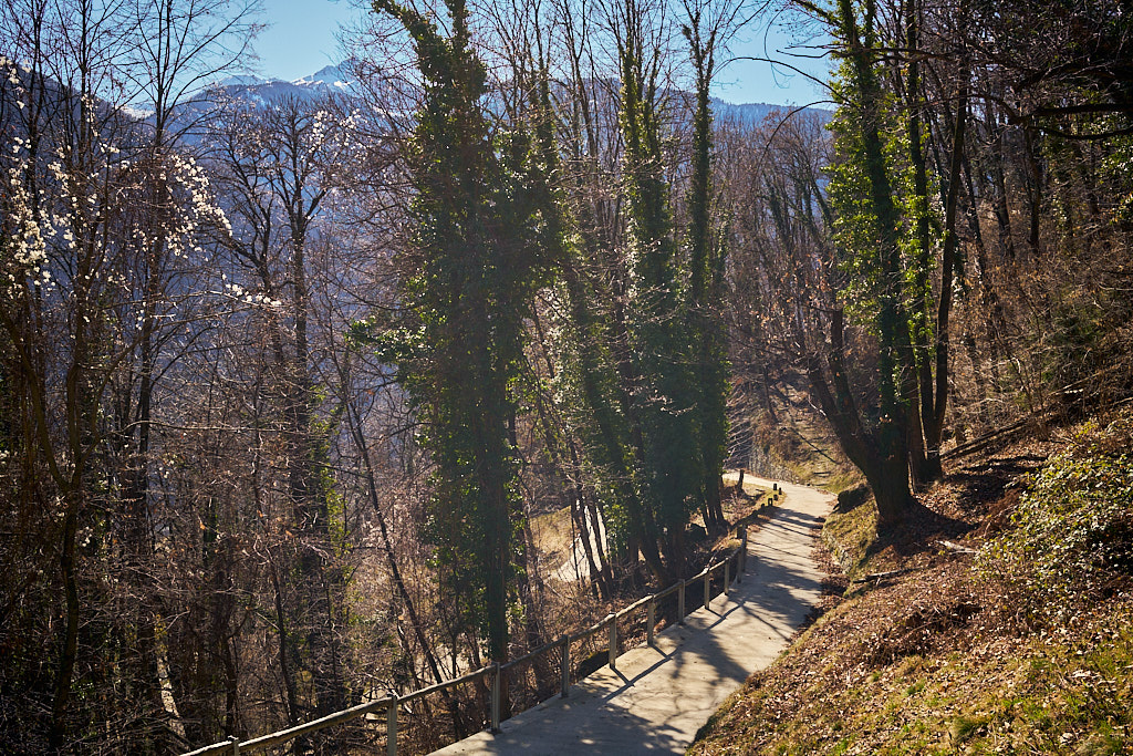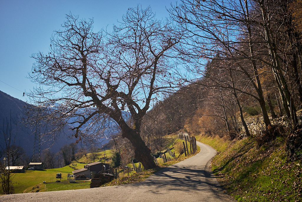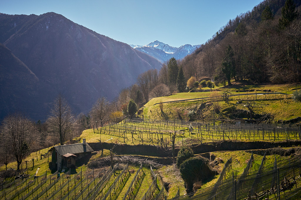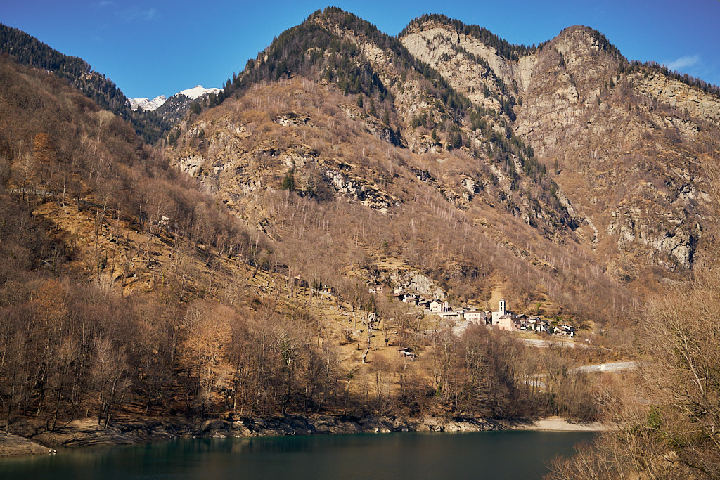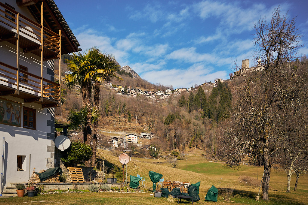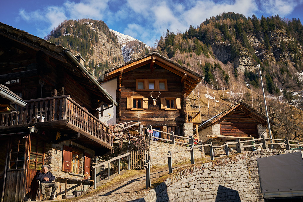 Von hier aus fuhr ich nun weiter in den mir unbekannten Teil des Calancatals. Das Tal war schneefrei, die Sonne schien, es hatte fast keinen Verkehr und die Fahrt entlang des Flusses Calancasca war dementsprechend entspannt und meditativ. Bald erreichte ich das nächste Dorf Arvigo, von wo aus eine kleine Seilbahn gerade nach Braggio hinauffuhr. Braggio ist offenbar auch über eine Strasse erreichbar und wäre bei weniger Schnee sicher auch einen Besuch mit dem Bike wert.