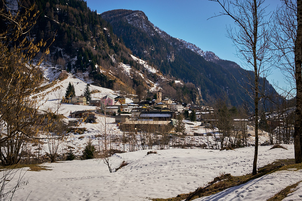 Selma, Cauco, St. Domenica und Augio waren die Namen der nächsten Dörfer, durch die ich hindurchfuhr. Schliesslich erreichte ich das bereits schneebedeckte Rossa auf 1070m Höhe. Die Schneegrenze schien hier also noch etwas tiefer zu liegen als bei uns.