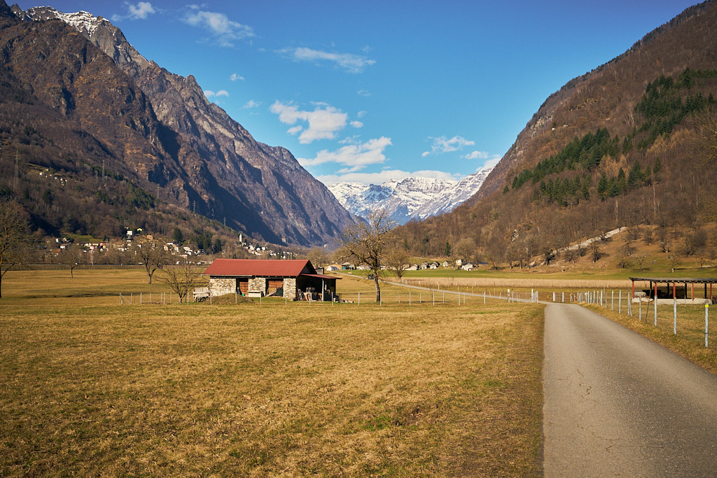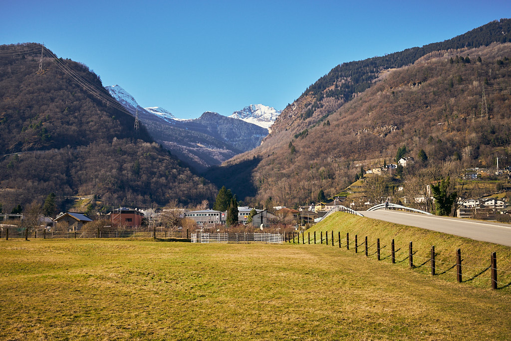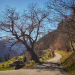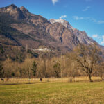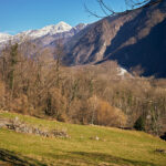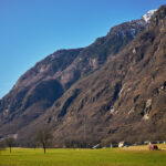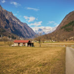 Bei der Abfahrt aus dem Calancatal hinaus wurde mir erst bewusst, wie viele Höhenmeter ich auf der lang gezogenen, fast unmerklich ansteigenden Strasse zurückgelegt hatte. Es ging nämlich äusserst rasant abwärts. Im Nu hatte ich wieder den Stausee bei Buseno erreicht und wenig später kurvte ich schon durch einen Tunnel und mehrere langgezogene Kurven hinunter zum Ortsrand von Grono. Ich wechselte auf einer Brücke zum Radweg am östlichen Ufer der breit durchs Tal fliessenden Moesa und legte die letzten 11 Kilometer in der warmen Nachmittagssonne an Bauernhöfen, Esel- und Schafherden vorbei nach Lostallo zurück.