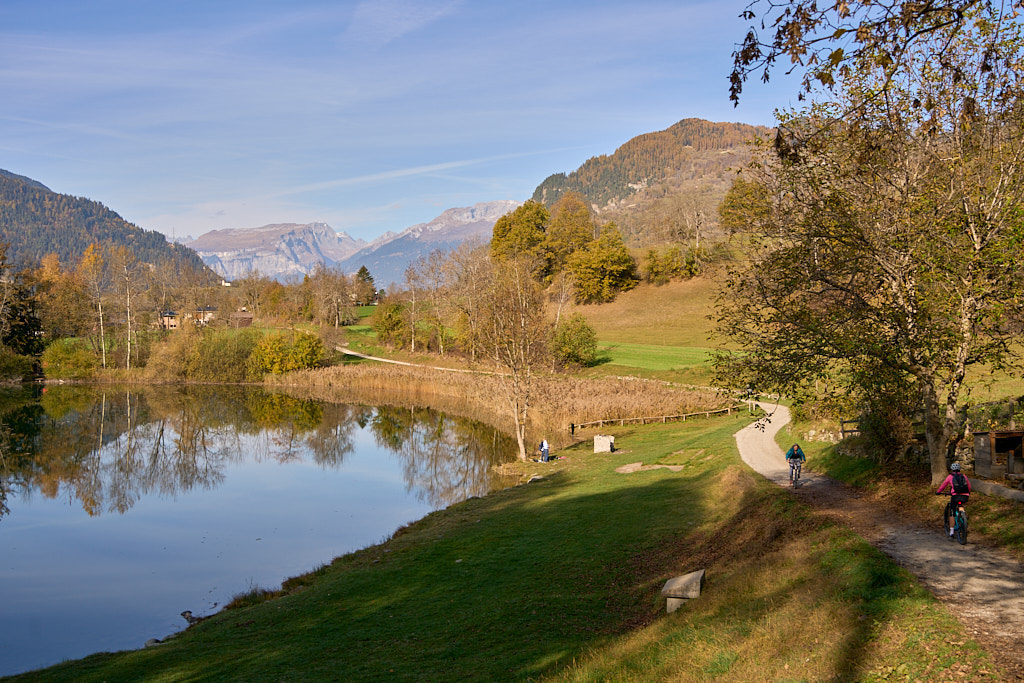 Zwischen Almens und Paspels kamen wir am Canovasee vorbei, der um diese Jahreszeit völlig verlassen und kostenlos in der Sonne glitzert. Im Hochsommer herrscht hier reger Badebetrieb und Eiskonsum.