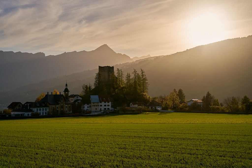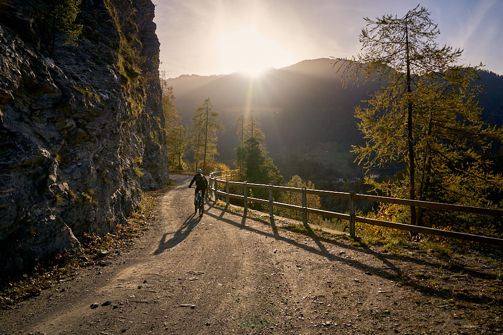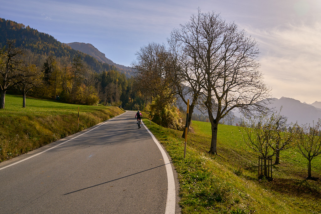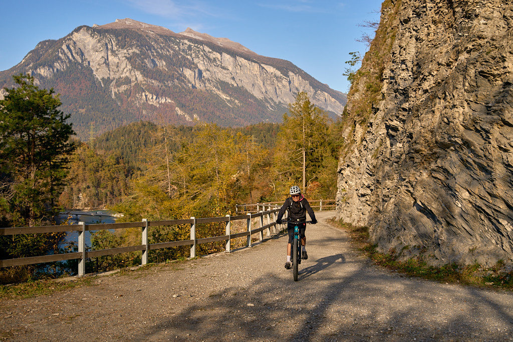 Von nun an wurde der Rückweg zu einem Wettlauf mit der Sonne. Sie stand zwar immer tiefer, kam aber in der zunehmend weiten Talebene vermehrt wieder zum Vorschein und ab Tomils konnten wir die Rückfahrt bis nach Scharans wieder ständig in der allerdings nicht mehr sehr wärmenden Nachmittagssonne verbringen.