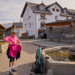 Im Schatten und bei sehr frischer Temperatur starteten wir am Hinterrhein in Thusis. Im Aufstieg nach Scharans erreichte uns jedoch bald die Sonne. Im Dorfzentrum von Scharans wurde die Strasse gerade neu verlegt und eine Reihe von Umleitungen zwang uns, auch einmal das Neuland der Seitengassen im Ort kennenzulernen. Man kann sich als Tourist auch zwischen einem Dutzend Häusern fast verirren, wenn man die fast ebenso grosse Anzahl von Ortsteilen auf den Hinweisschildern nicht kennt.
