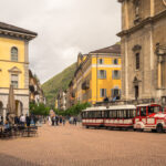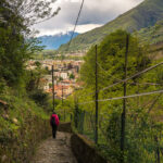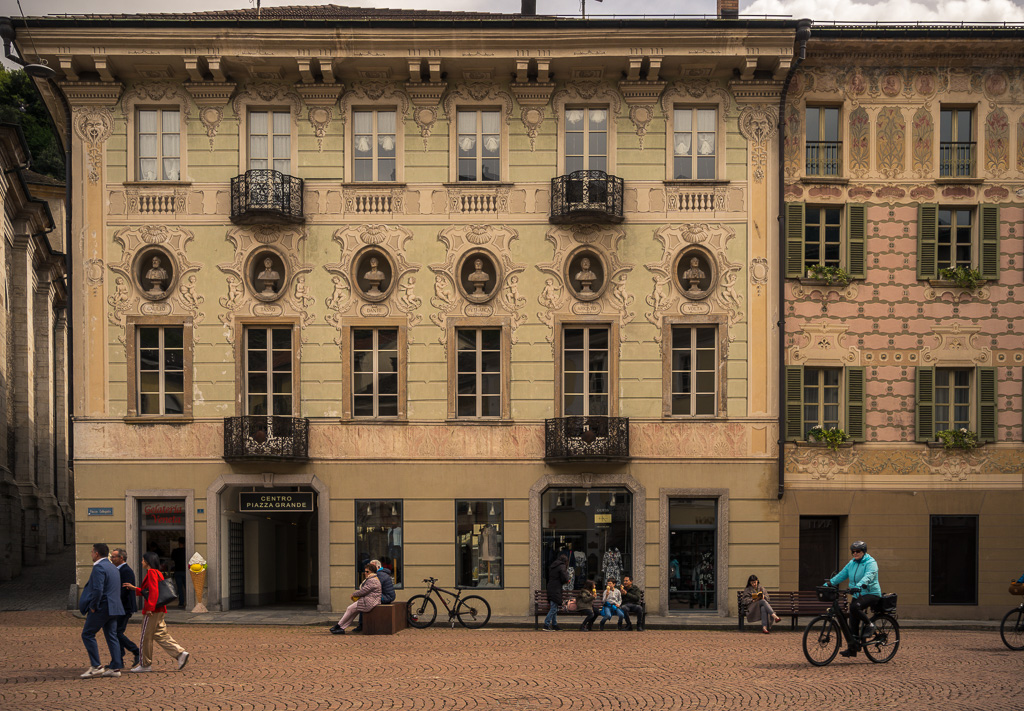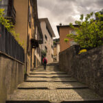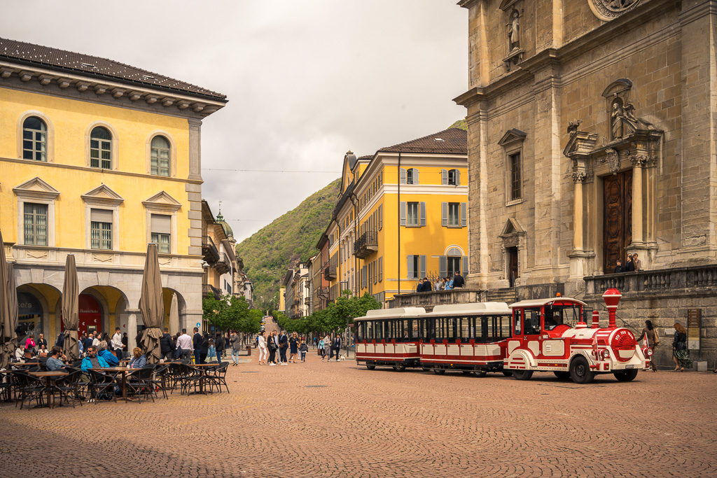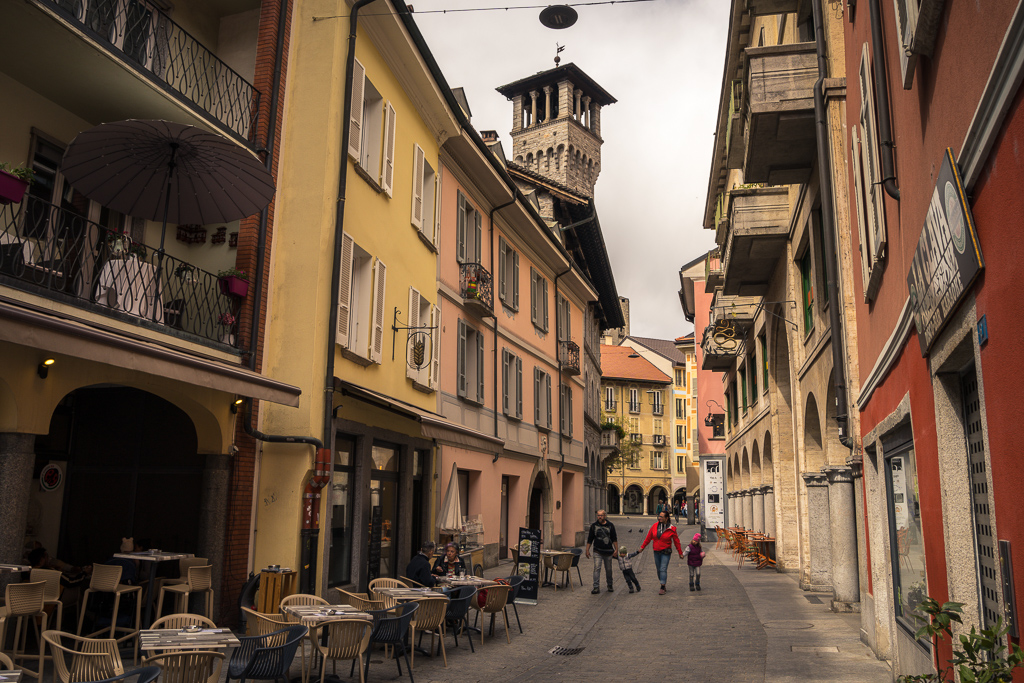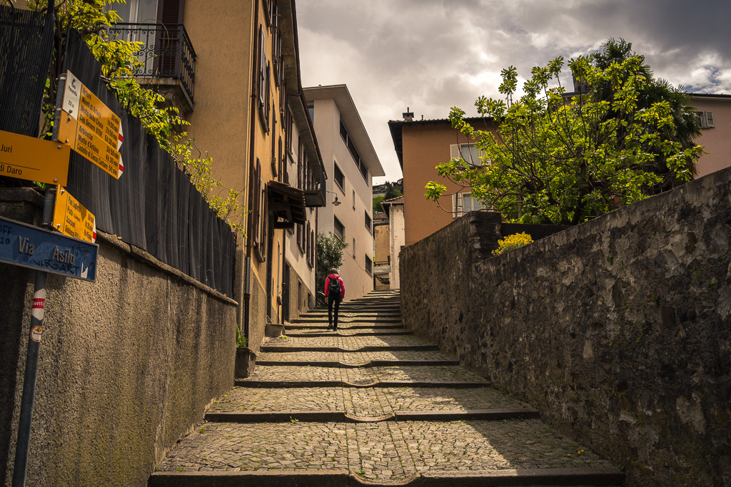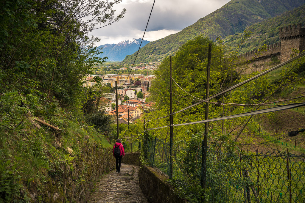 Auf der sehr malerischen und verwuchterten Salita ai Castelli gelangten wir in den Stadtteil Nocca. Kurz danach erreichten wir einen grossen Verkehrskreisel am Eingang der Altstadt Bellinzonas mit zahlreichen Cafés, Restaurants, Geschäften und viel flanierendem Publikum.