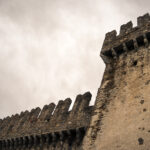 Weiter ging es über einen schönen Waldweg und durchs nächste Villenviertel hinunter zur zweiten Burg, dem Castello di Montebello. Auf der weitläufigen Rasenfläche vor den Mauern wird im Sommer wahrscheinlich viel los sein. Nach einem Abstecher über die Zugbrücken in den Innenhof wanderten wir auch hier wieder weiter.
