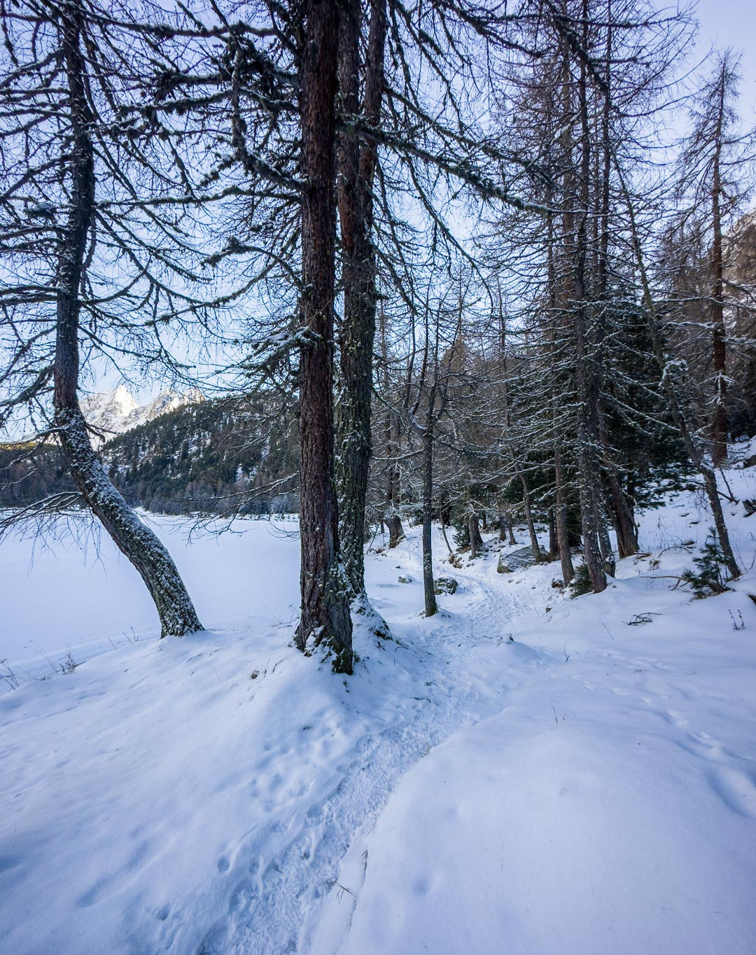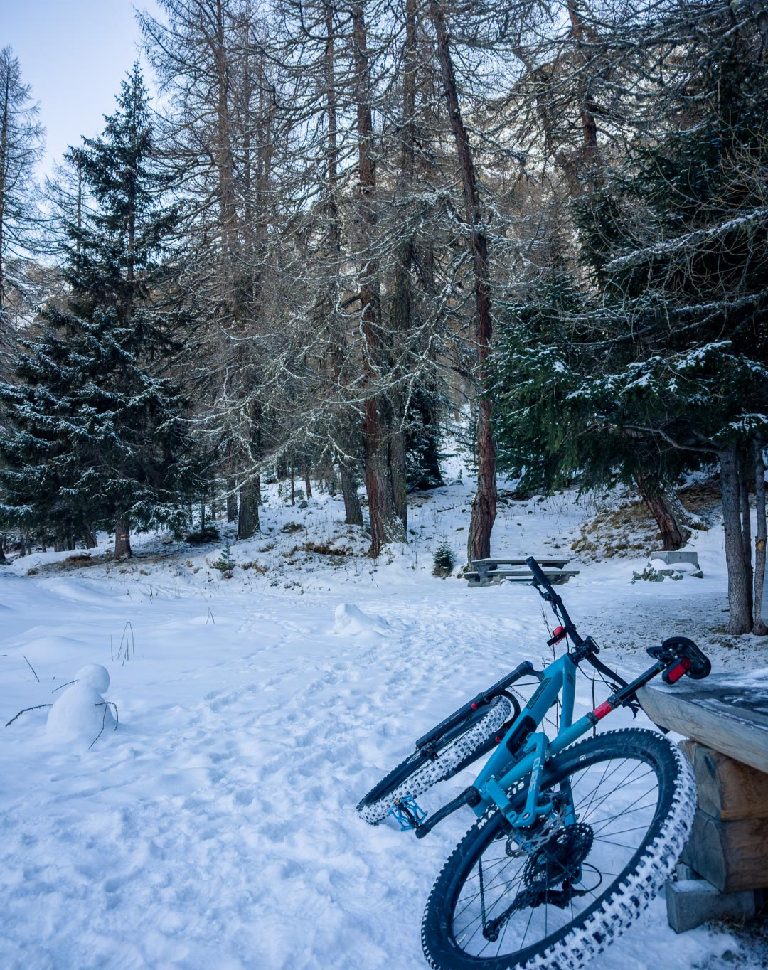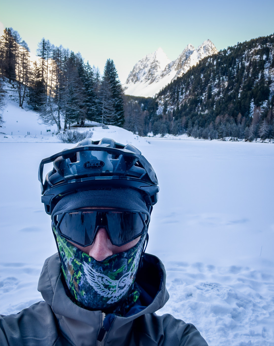Letzte (?) Biketour des Jahres 2023 von Filisur über Bergün und Preda zum Lai da Palpuogna. Sehr anstrengende Fahrt mit dem Mountainbike bei eisigen Verhältnissen mit Aufstieg über den schneefreien, aber teils vereisten MTB-Trail zwischen Bellaluna und Crestas da Buel.