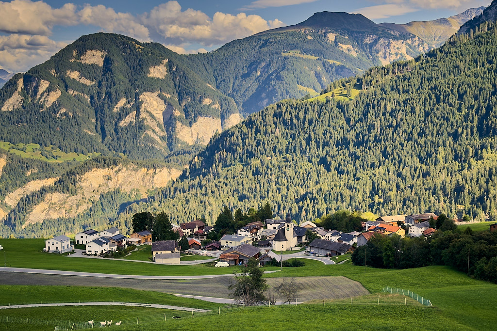 Wiederholung der kürzlichen Tour von Thusis zum Glaspass, diesmal allerdings im Aufstieg durchgehend auf der Heinzenbergstrasse, die vom Tal durch die verschiedenen Dörfer auf dem Heinzenberg bis nach oben führt. Dies dürfte auch die „normale” Route für die zahlreichen Rennradfahrer sein, die man hier antrifft.