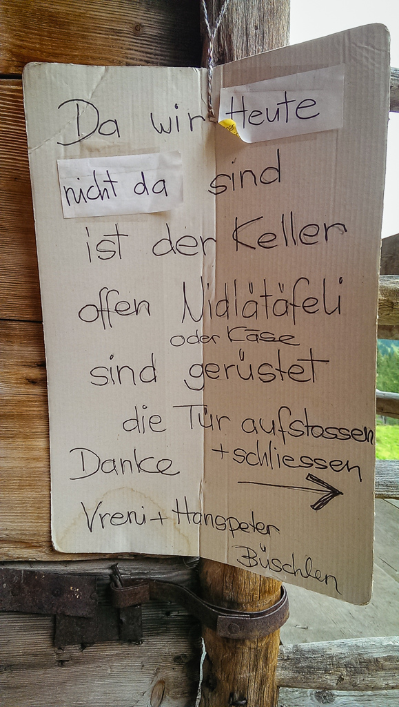 Bikerunde zum Hahnenmoospass, diesmal mit Abstecher zur Alp Trachsel. Käsekauf bei einer freistehenden Hütte unterhalb von Farni.