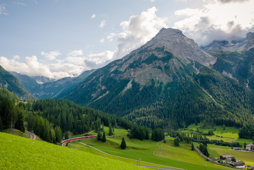 Mit RhB nach Bergün (Parkplatz für Autos bei der Talstation des Sessellifts Darlux).