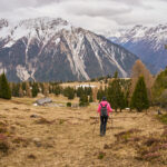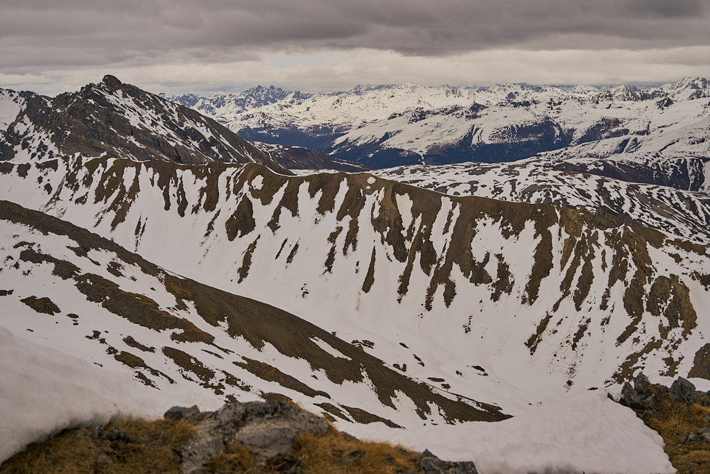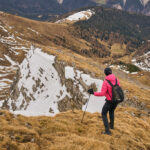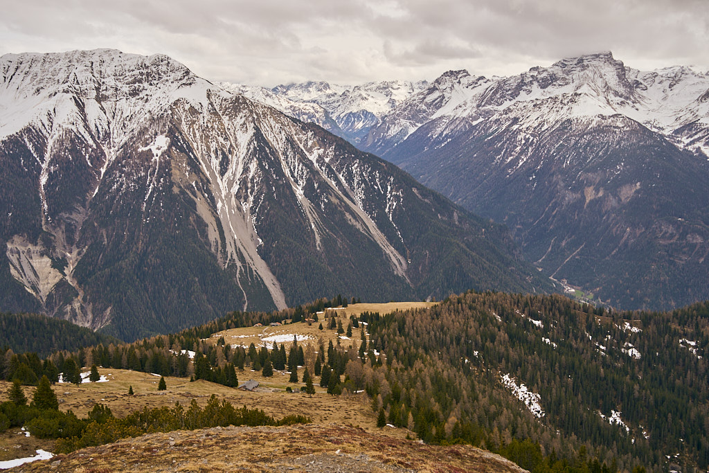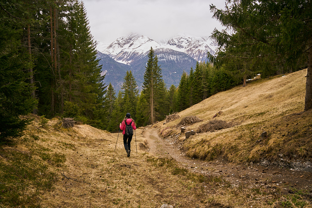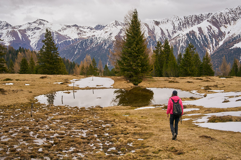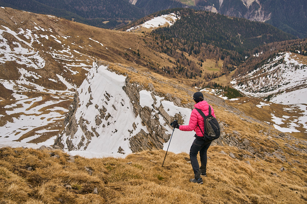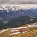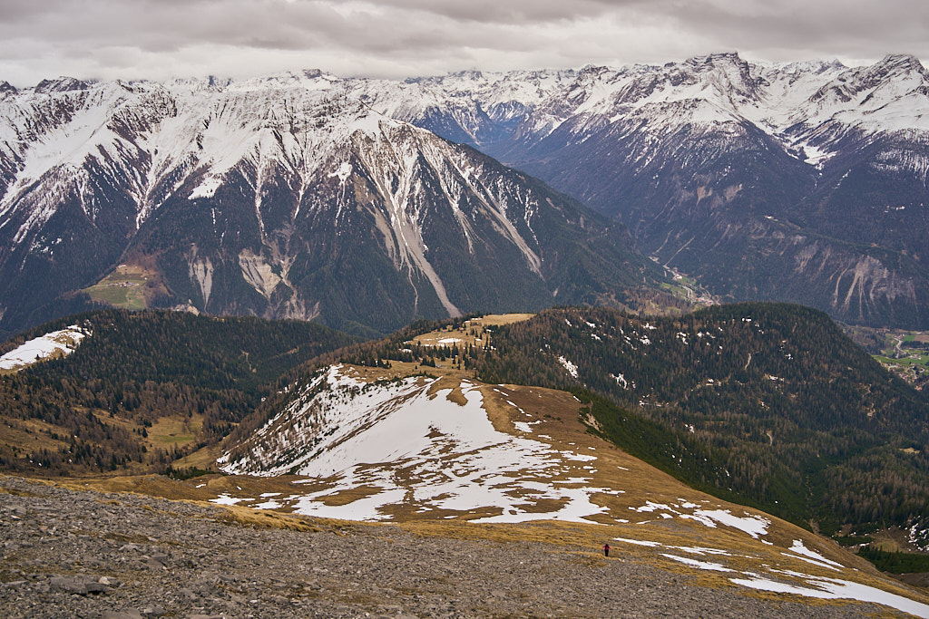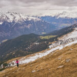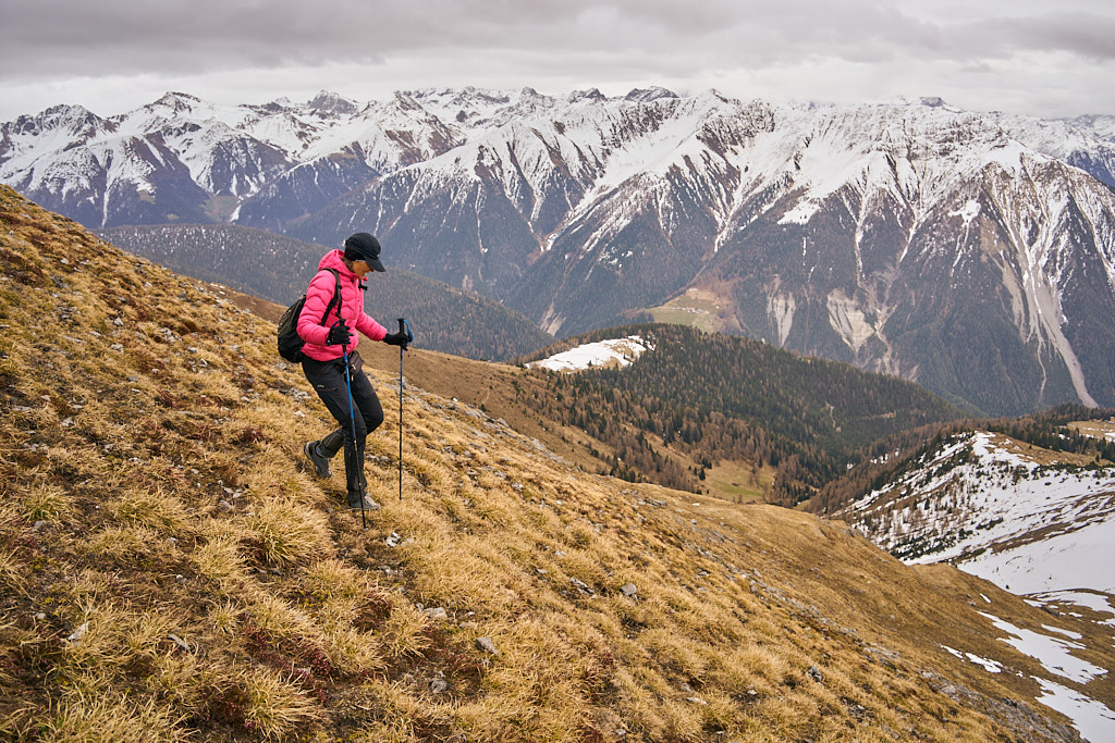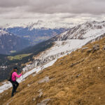 Der schneearme Winter hinterliess auf dem Tiaun diesmal schneefreie Bereiche, auf denen wir durchgehend zum Gipfelkreuz aufsteigen konnten. Meine Partnerin marschierte bereits zeitig von zuhause los, während ich noch unentschlossen herumtrödelte und ihr deshalb später mit dem Mountainbike nacheilen musste. Kurz vor der Alp Afiein konnte ich sie aber wieder einholen und von dort an ging es gemeinsam in Richtung Tiaun weiter.