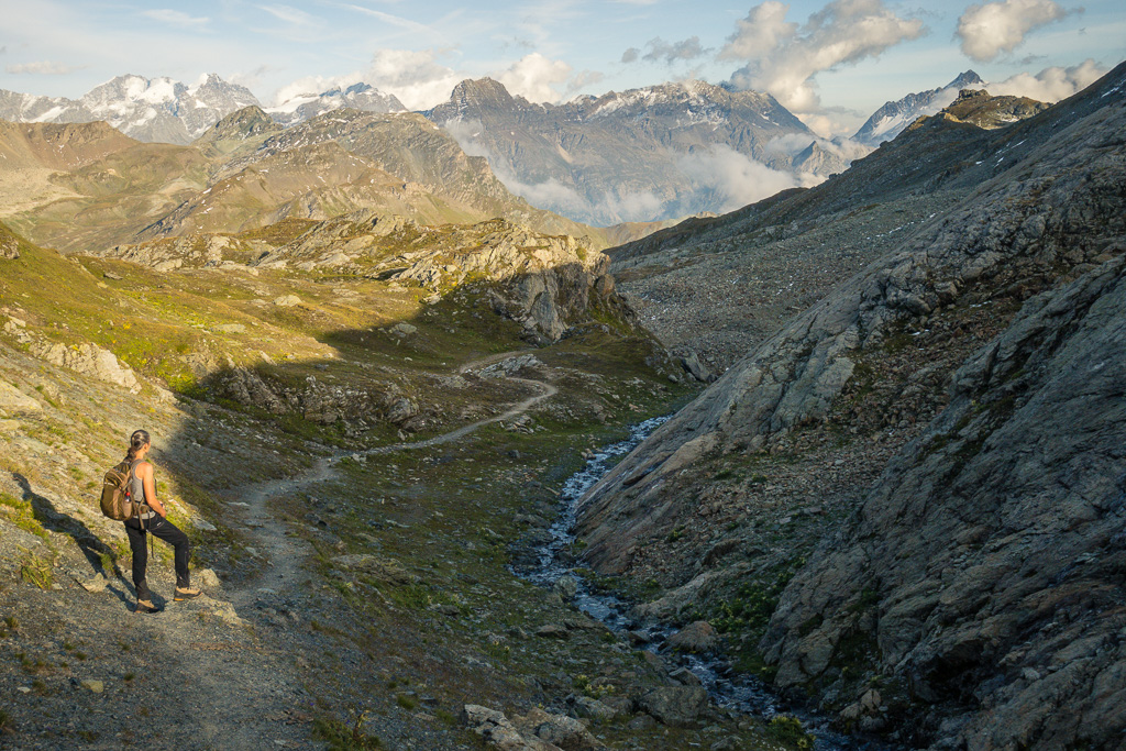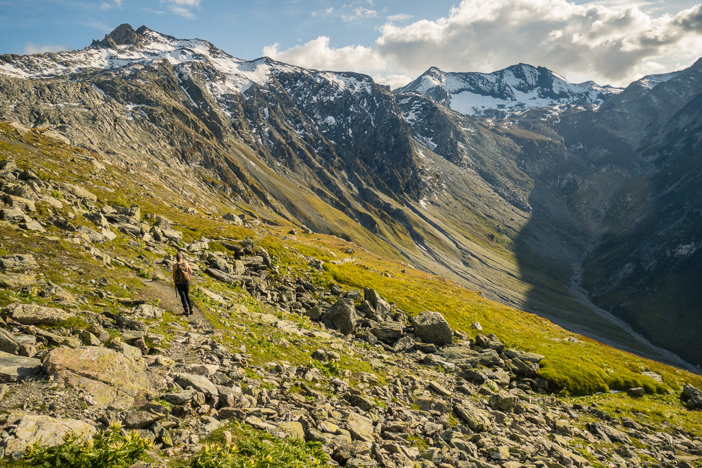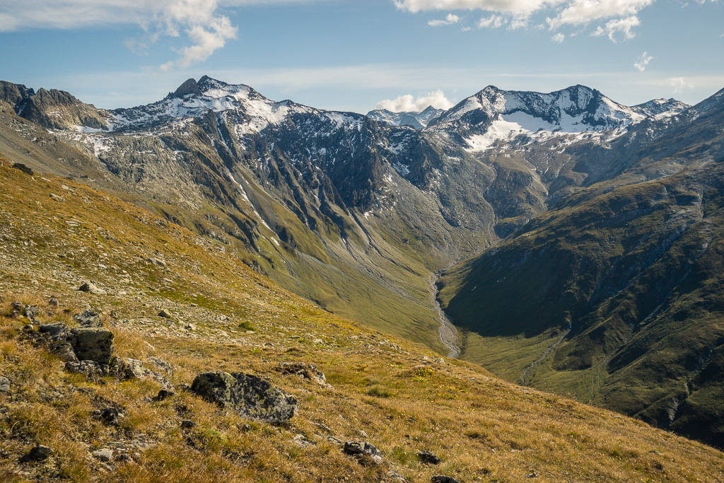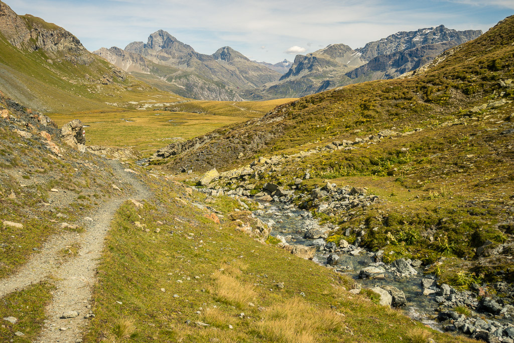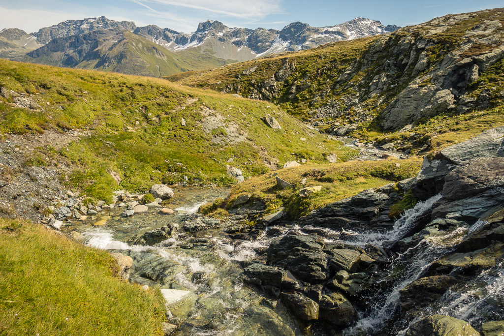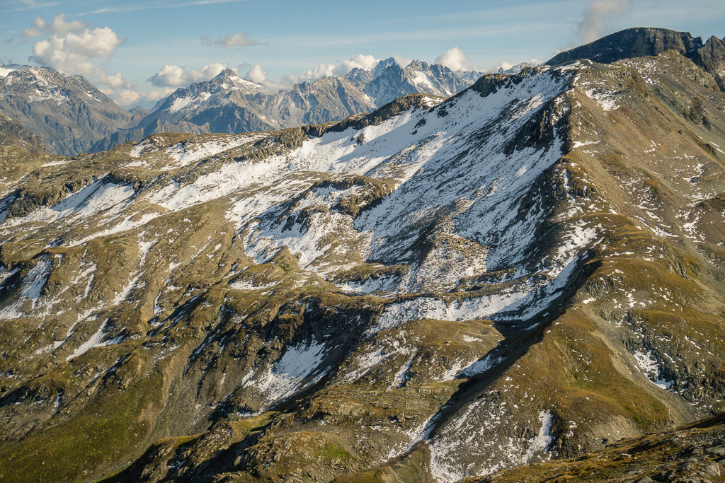 Vom Stallerberg aus weiter nach Süden, zahlreichen Steinmännern folgend, zum Gipfel Uf da Flüe. Schöne Aussicht auf das Tal von Avers. Weiterhin nach Süden steil absteigen zum Passübergang Fuorcla da la Valletta. Hier kann die Tour auch abgekürzt und direkt nach Bivio zurückgekehrt werden.
