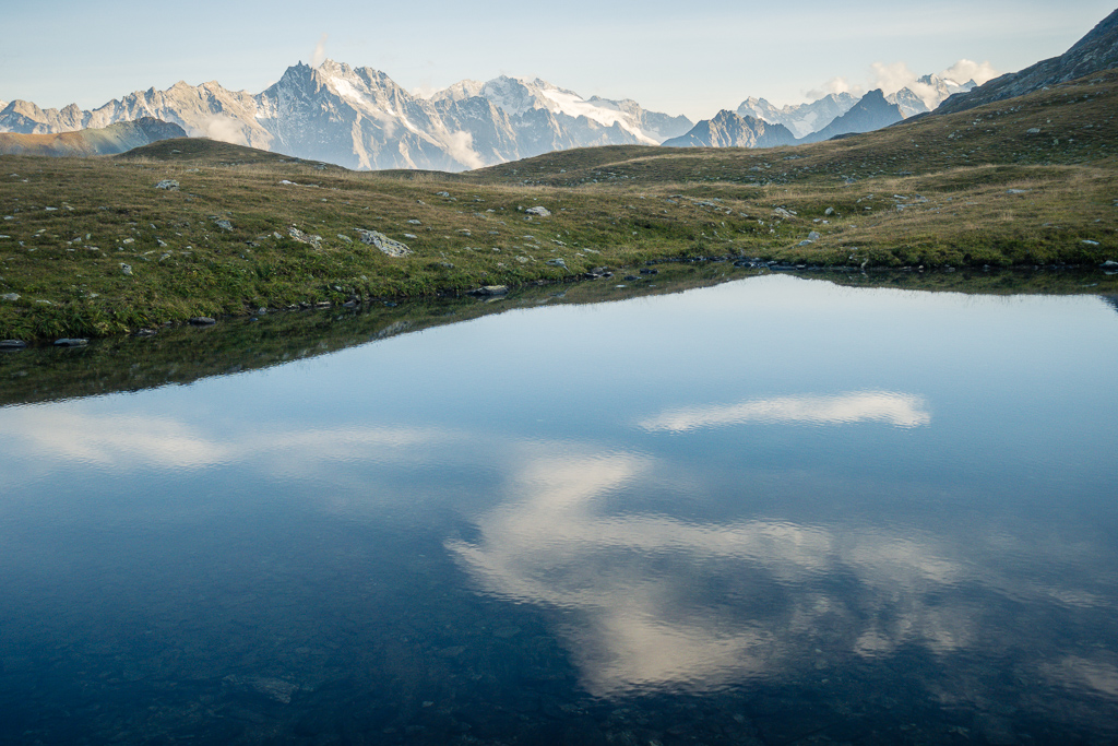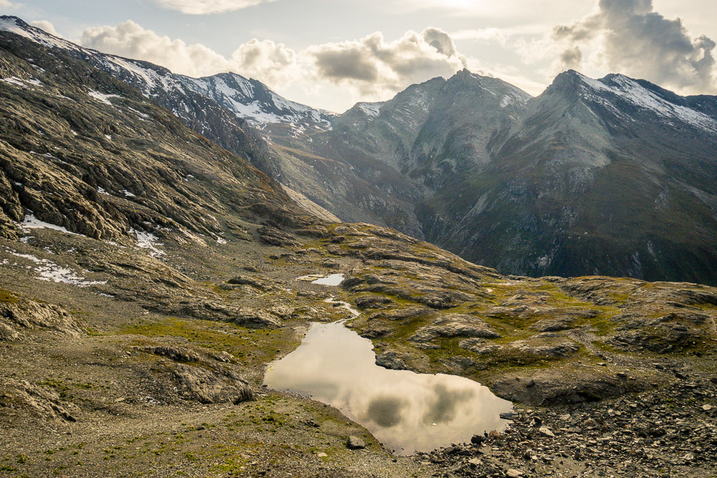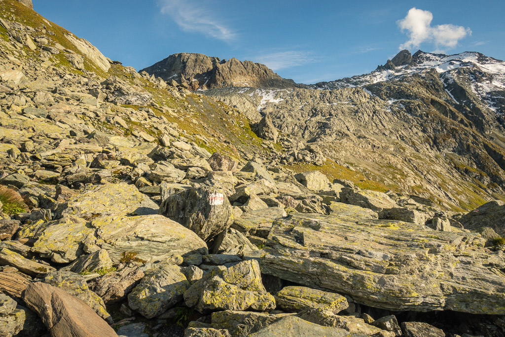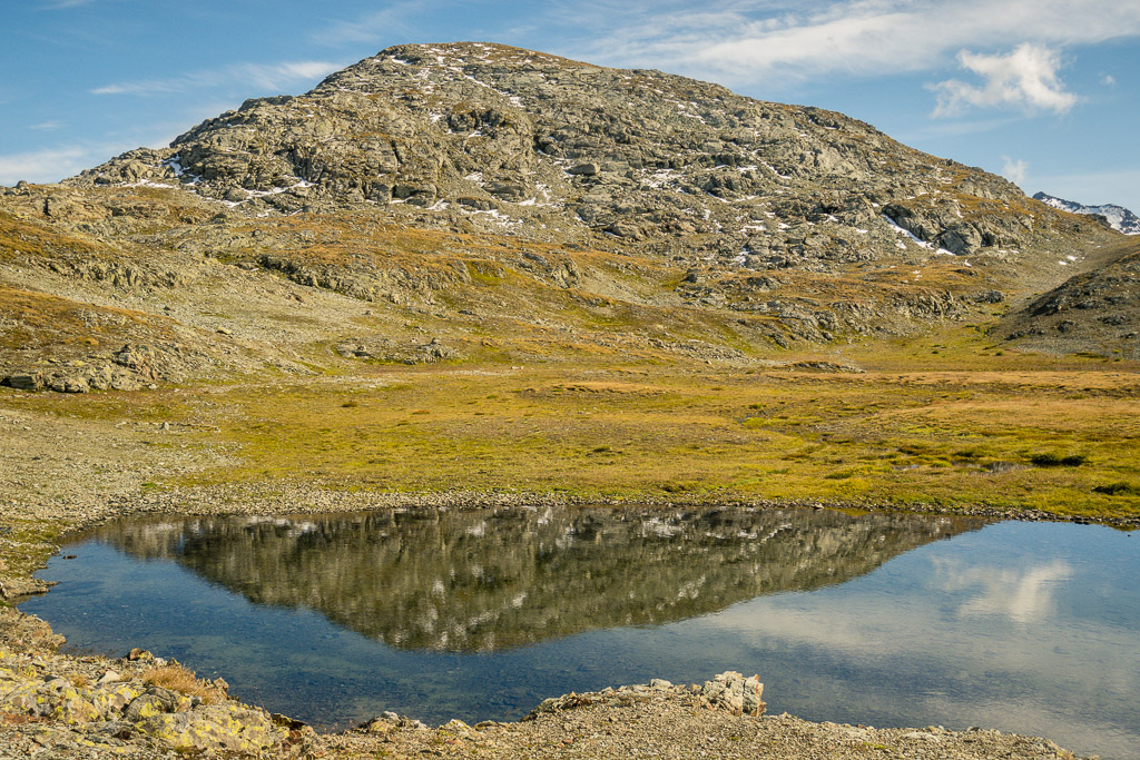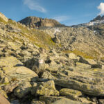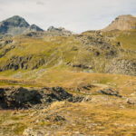 Weiter dem Hang entlang und zuletzt steil aufwärts zur Forcellina, die in historischen Zeiten als Passübergang zwischen dem Septimerpass und Avers diente. Unter den Felswänden des Piz Forcellina nach Osten absteigen. An diversen kleinen Bergseen und flachen Sumpfgebieten vorbei zum Septimerpass. Nun langer Abstieg auf einem Fahrweg bis nach Bivio.