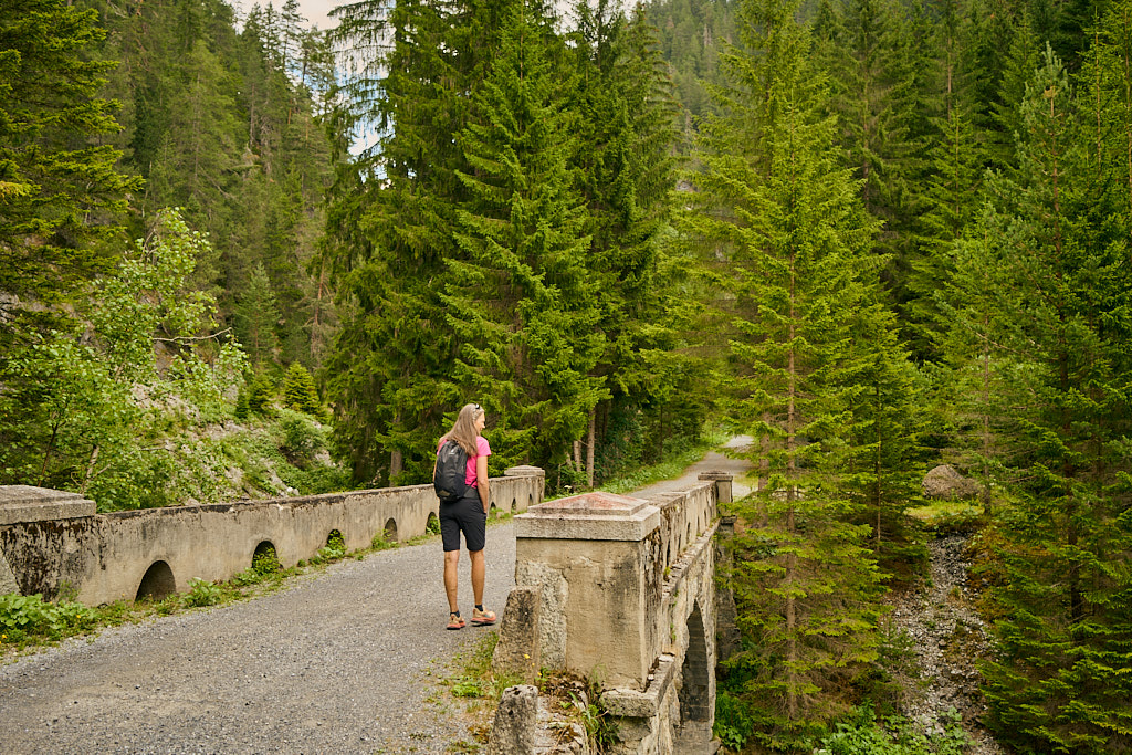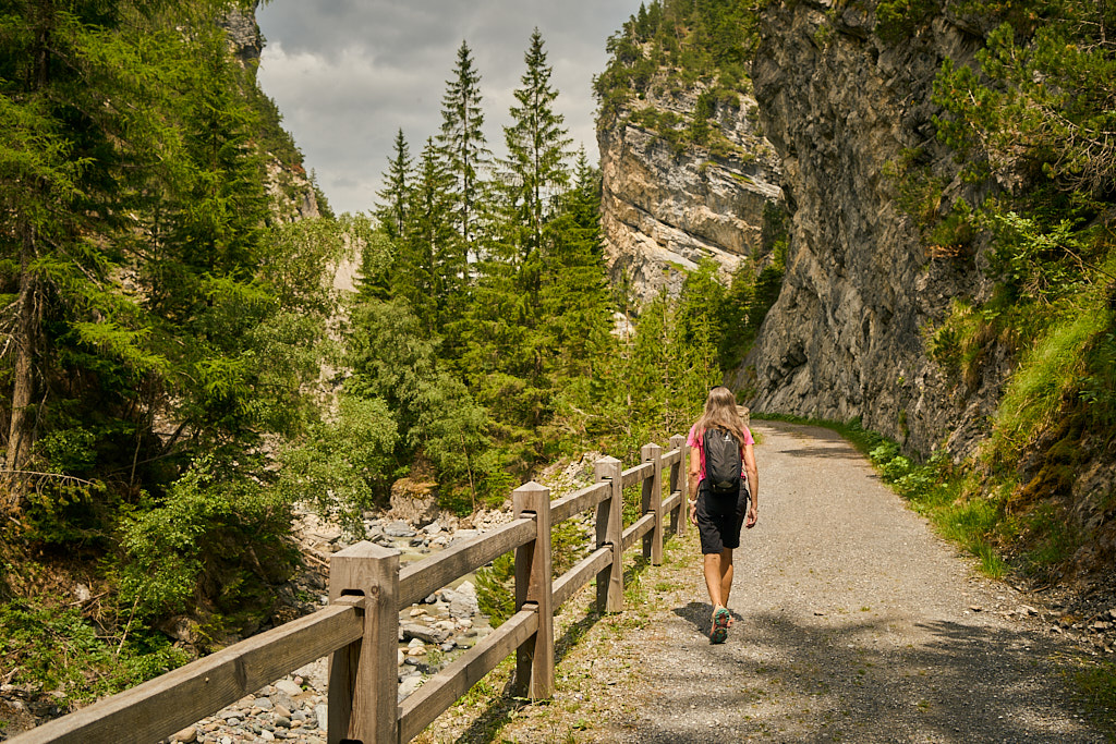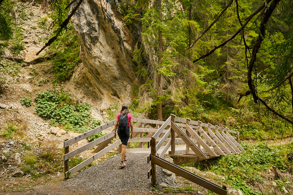 Spaziergang zum Bahnhof Davos Wiesen und auf der alten Zügenstrasse weiter durch die Zügenschlucht nach Schmelzboden.