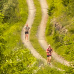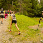 Bequem im Gras sitzend konnte ich somit oben am Waldrand den erfolgreichen Start und Susannes schrittweises Vordringen in die Höhe gebannt mitverfolgen. Es dauerte nicht lange, da tauchte schon der Spitzenläufer in erster Position auf – ein Dominikaner in entspanntem Dauerlauf. Die folgenden paar Anwärter auf die Toppositionen liefen ebenfalls noch, danach begann aber bald einmal der Tross der bereits mehr oder weniger schnell gehenden Teilnehmer. Ich musste aufpassen, Susanne vor lauter Gucken auf die Karte nicht noch beim tatsächlichen Vorbeilaufen an mir in der Realität zu verpassen, erspähte sie aber rechtzeitig und hatte somit schon die ersten geplanten Aufnahmen im Kasten bzw. im Handy.