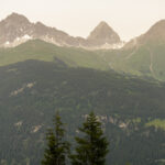 Mit hohem Tempo raste ich also wieder durch den Wald von Rona nach Tinizong, querte den Fluss der Gelgia auf einer Brücke und fuhr auf einem Radweg weiter nach Savognin zurück. Da der Weg flussabwärts verlief, konnte ich trotz Schotter auch hier ein zügiges Tempo aufrechterhalten. Ich kam bei der Kirche von Son Martegn in Savognin an und begann den Aufstieg zur Alp Tarvisch.