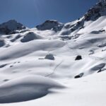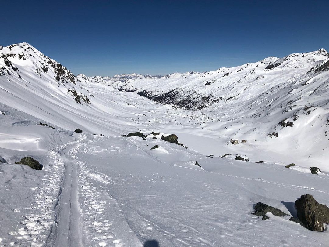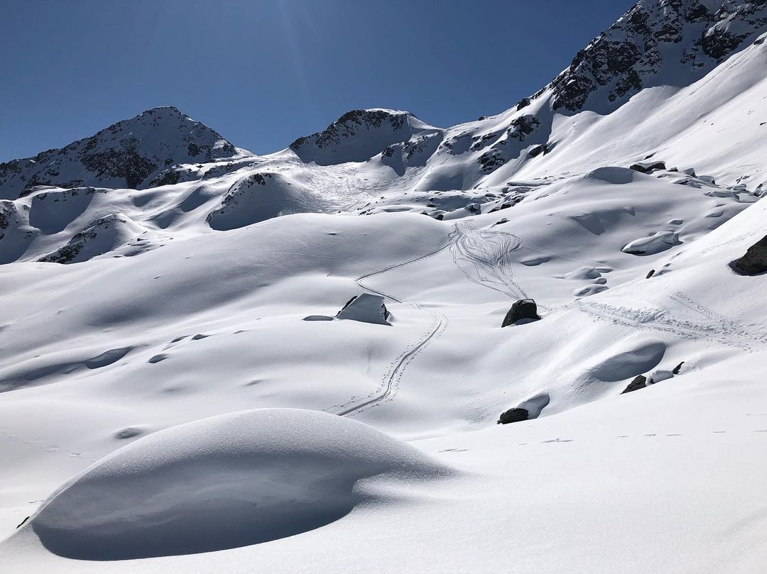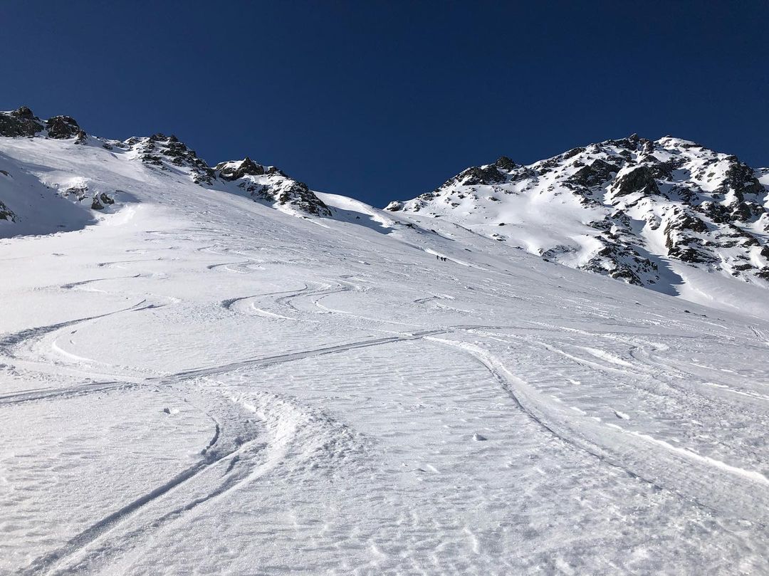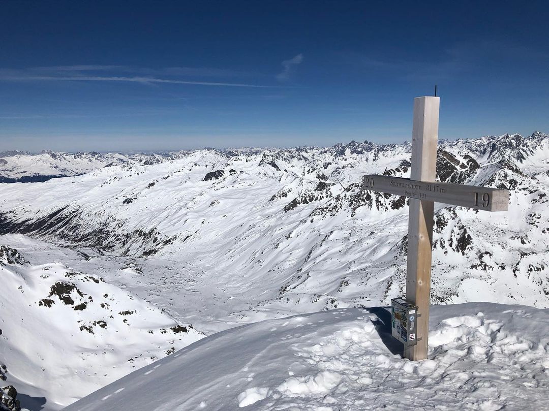 Anstrengende Tour aufs Flüela Schwarzhorn mit langem Anmarsch über die Flüelapassstrasse bis zur Passhöhe. Ziemlich gewagter und ausgesetzter Schlussanstieg zu Fuss auf den Gipfel, den ich so steil und exponiert gar nicht in Erinnerung hatte von meiner letzten Sommerwanderung her. Entsprechend aufregende Abfahrt.