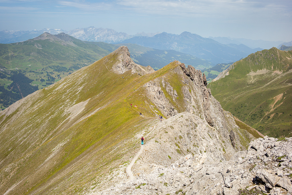 An den (teilweise bewirtschafteten) Alphütten der Alp Sanaspans vorbei zu einem Wegweiser. Ab hier nach Südosten auf dem Bergweg zum Lenzerhorn und bis zum Gipfel stets den blau-weißen Markierungen folgen.