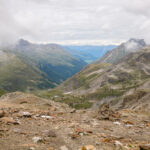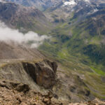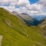 Mehr oder weniger auf gleicher Höhe haltend, erreicht man schließlich eine Geländekante, von der aus man den beim Aufstieg begegneten Wegweiser auf 2.800m erblickt. Ohne Schwierigkeiten zum Wegweiser absteigen und weiter auf dem Aufstiegsweg aus dem Tal zur Passstraße und zurück zum Parkplatz.