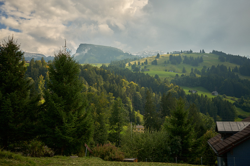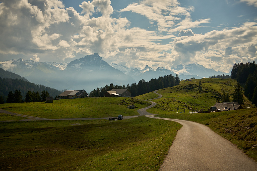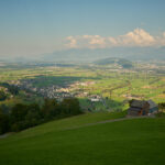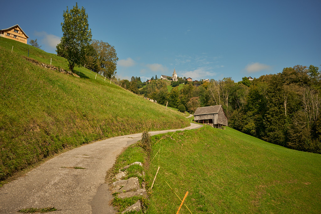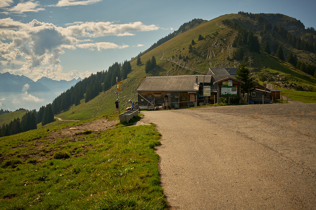 Ich fuhr aus dem Dorf heraus weiter in Richtung Vorder Höhi. Der Aufstieg war steiler und länger, als ich ihn in Erinnerung hatte. Im oberen Teil genoss ich das Panorama vom benachbarten Gulmen und Leistchamm, beides häufige Tourenziele von früher, bis hin zu den Glarner Alpen hinter mir. Nur wenige Wanderer und Radfahrer waren heute auf der Vorder Höhi als sonst beliebtem Ausflugsziel zu sehen.