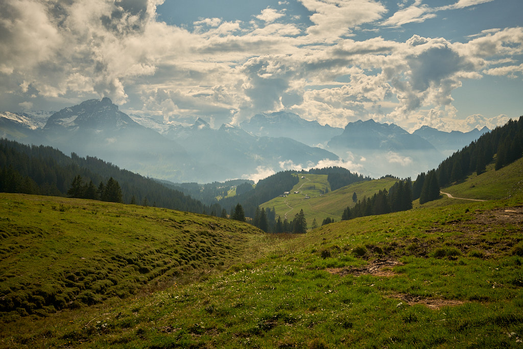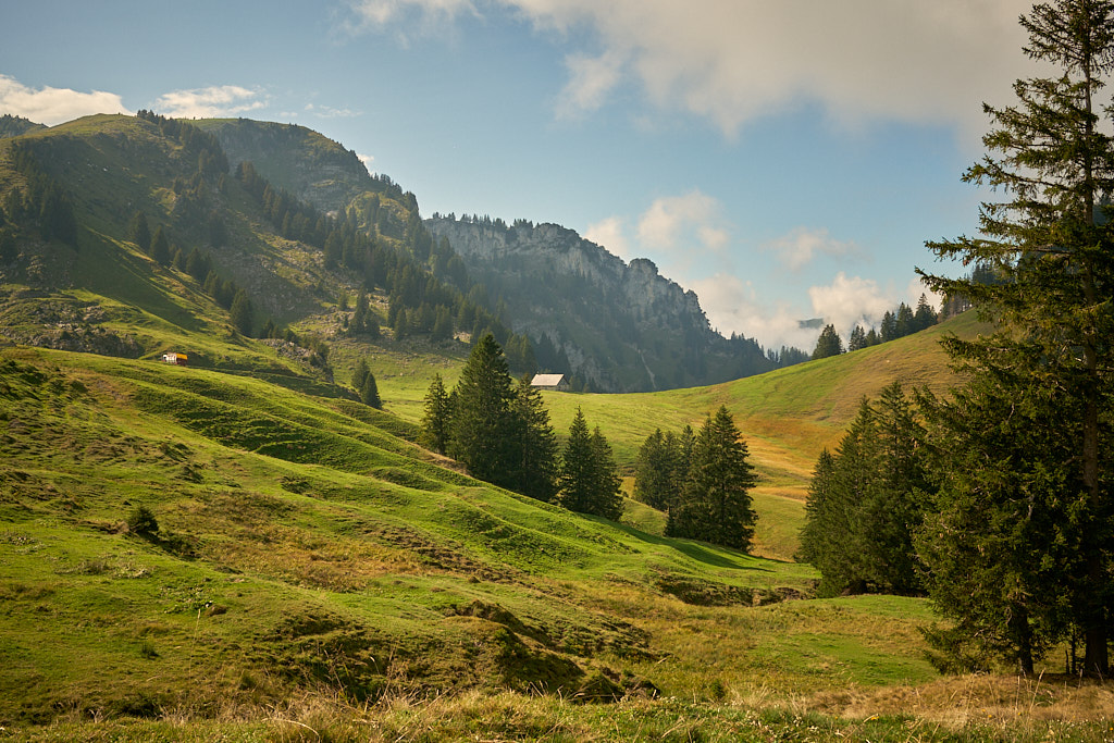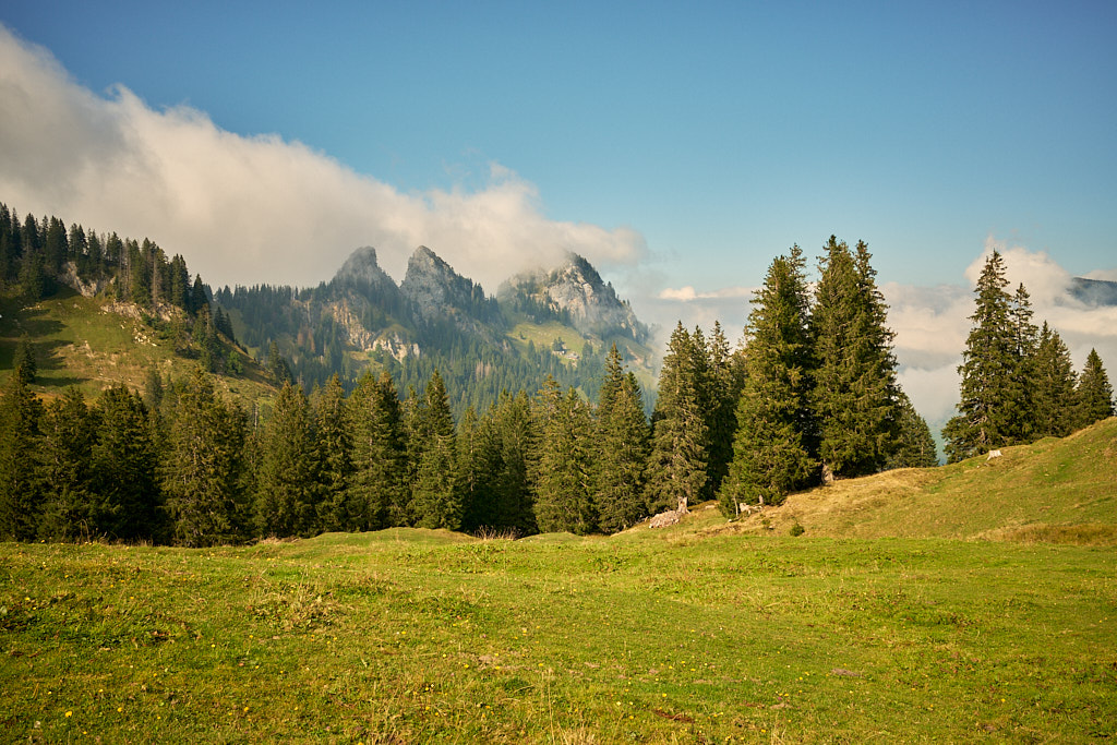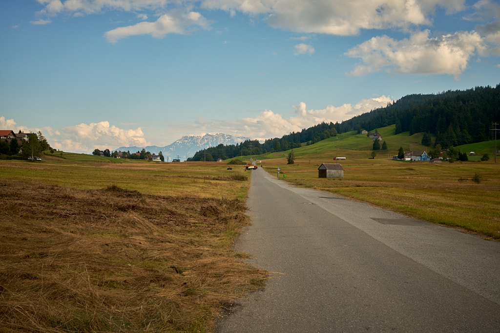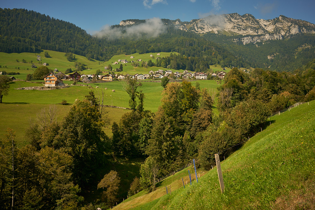 Ich fuhr aus dem Dorf heraus weiter in Richtung Vorder Höhi. Der Aufstieg war steiler und länger, als ich ihn in Erinnerung hatte. Im oberen Teil genoss ich das Panorama vom benachbarten Gulmen und Leistchamm, beides häufige Tourenziele von früher, bis hin zu den Glarner Alpen hinter mir. Nur wenige Wanderer und Radfahrer waren heute auf der Vorder Höhi als sonst beliebtem Ausflugsziel zu sehen.