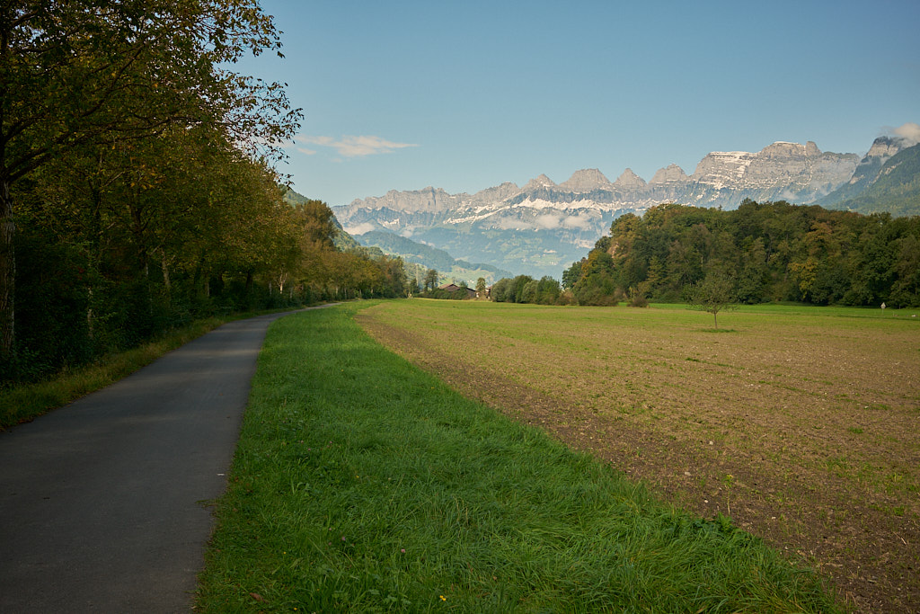 Hinter Wildhaus verliess ich die Hauptstrasse wieder und fuhr auf Alpstrassen nach Grabserberg. Hier eröffnete sich ein Panorama über die Weiten des Rheintals in Richtung Bodensee bis hin zur Bergkette der Drei Schwestern über Liechtenstein. Die anschliessende Abfahrt nach Grabs hinunter verlief weiter nach Buchs SG und Sevelen, auf der gegenüberliegenden Rheinseite von Vaduz. Nach einem letzten grösseren Anstieg erreichte ich die Burg Wartau und fuhr auf der anderen Seite nach Trübbach und über eine längere Strecke der Bahnlinie entlang nach Sargans. Nach einer kleineren Irrfahrt um den Bahnhof herum erreichte ich die Industriezonen von Mels und kurz darauf wieder die Strecke vom Hinweg, auf der ich Bad Ragaz erreichte.