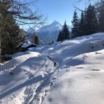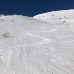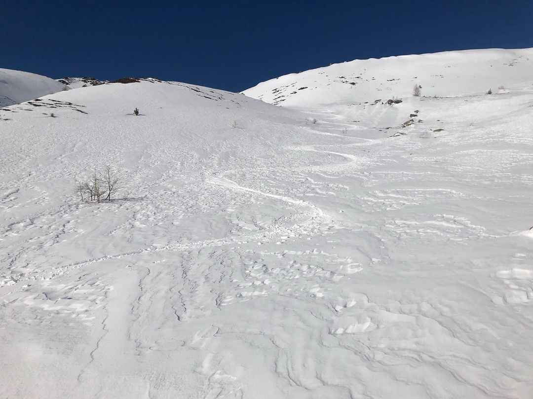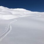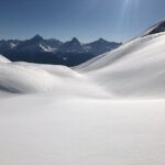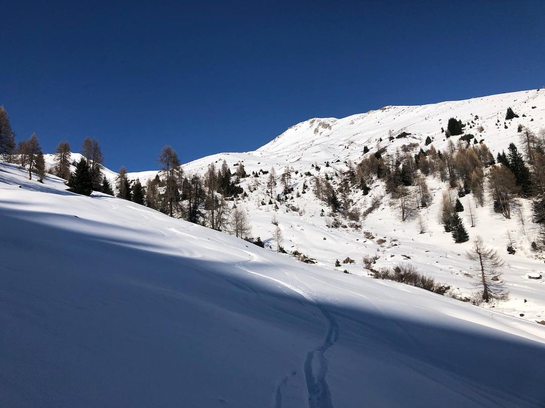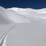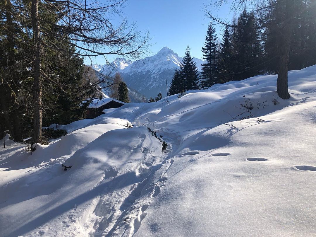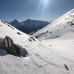 Erste Besteigung des Sandhubel (2763m) mit Ski. Grossartige Abfahrt in weiten Schwüngen über die Hänge des Gurgelun nach Martrüel und weiter zur Schmittner Alp.