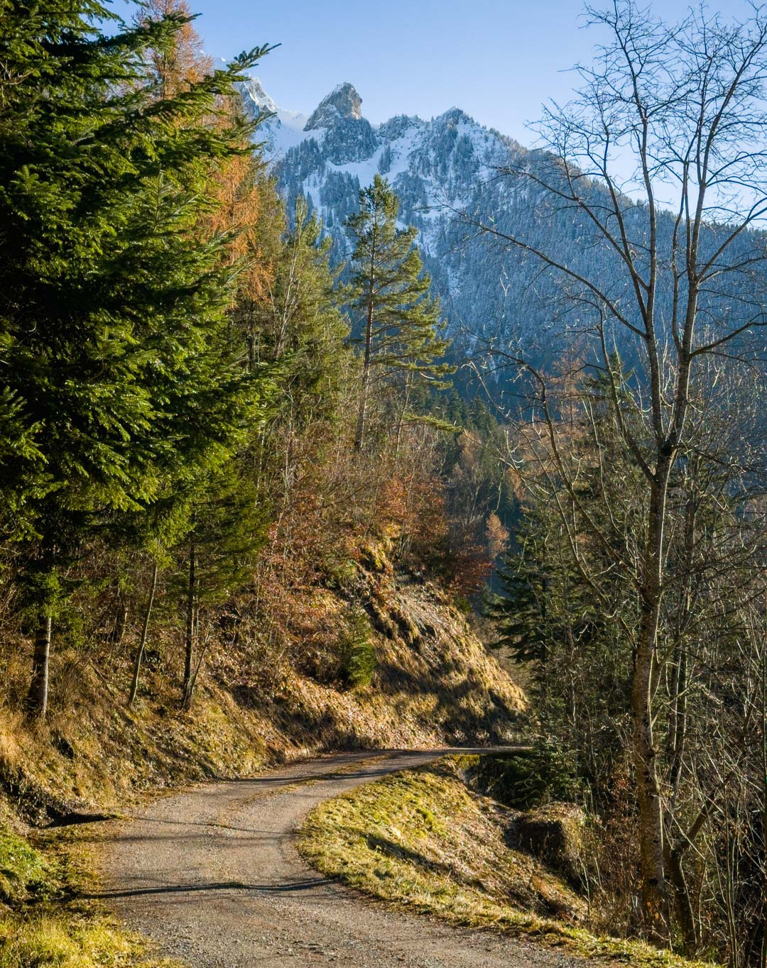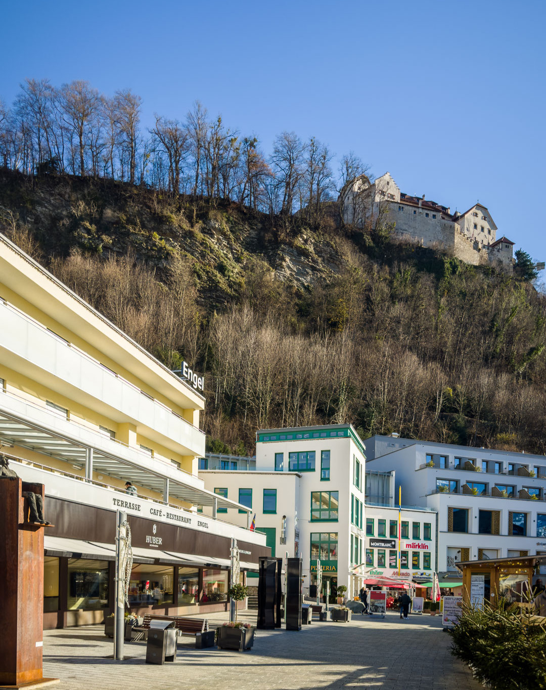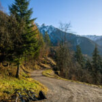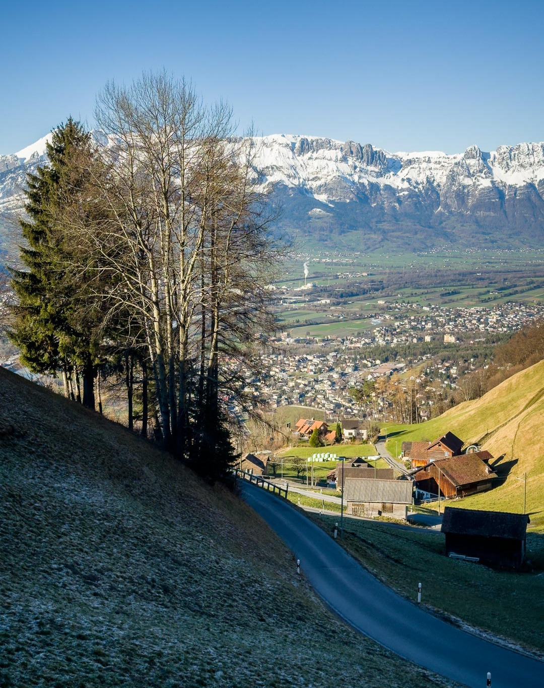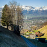 Nun zunächst wieder steil bergab auf der Strasse bis zur Abzweigung «Im Steinort». Am Ende der Wohnsiedlung beginnt die lange Abfahrt auf einem Waldweg hinunter zum Campingplatz bei Balzers. Weiter nach Balzers, kurz auf der Hauptstrasse zum Kreisel, dort nach Luzisteig abbiegen.