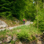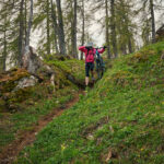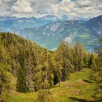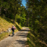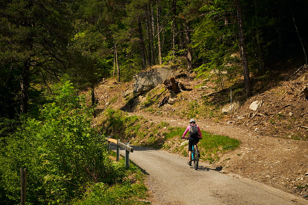 Für die Abfahrt wählten wir eine uns bisher unbekannte Variante, die sich als echtes Highlight entpuppte. Ein schmaler Trampelpfad führte uns zunächst, teils steil, unterhalb der Alp Neusäss zu den idyllisch gelegenen Ferienhütten von Alpboden. Von dort schlängelte sich die Waldstrasse in zahlreichen Kehren beeindruckende 1200 Höhenmeter hinab bis zum Rheinufer. Während dieser langen und genussvollen Talfahrt passierten wir immer wieder kleine, versteckte Zwischenebenen mit heimeligen Ferienhütten – wahre Kleinode, deren Existenz man von unten, beim Anblick der hoch aufragenden, teils abweisenden Wald- und Felshänge der Calandakette, kaum erahnen würde. Es war faszinierend, diese verborgenen Siedlungen zu entdecken, die wie kleine Oasen der Ruhe in der steilen Bergflanke lagen.