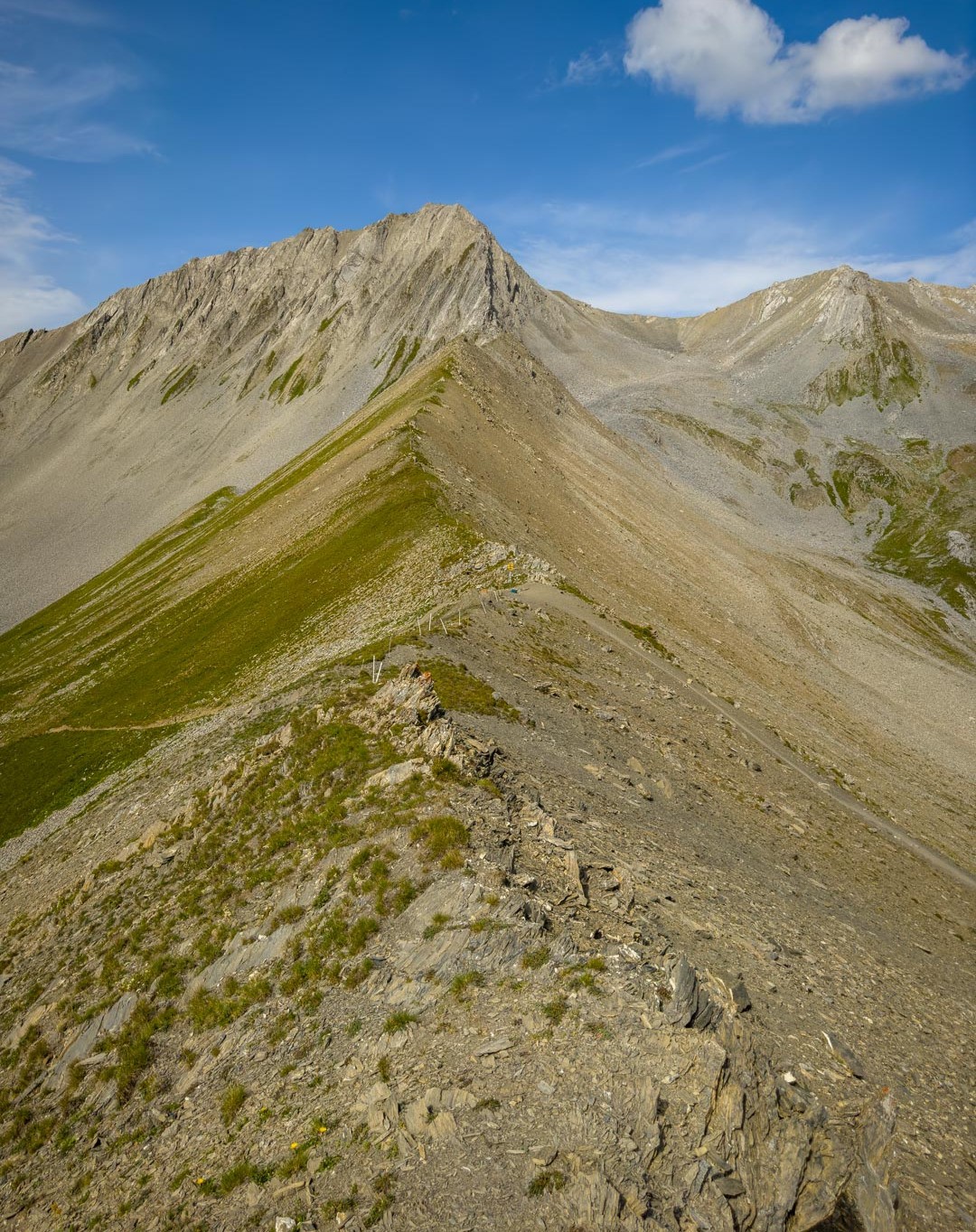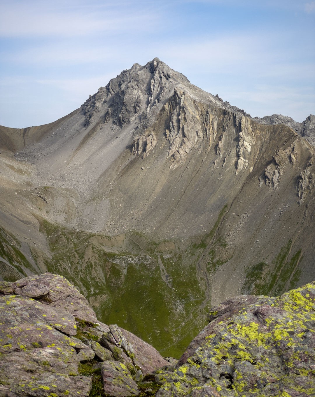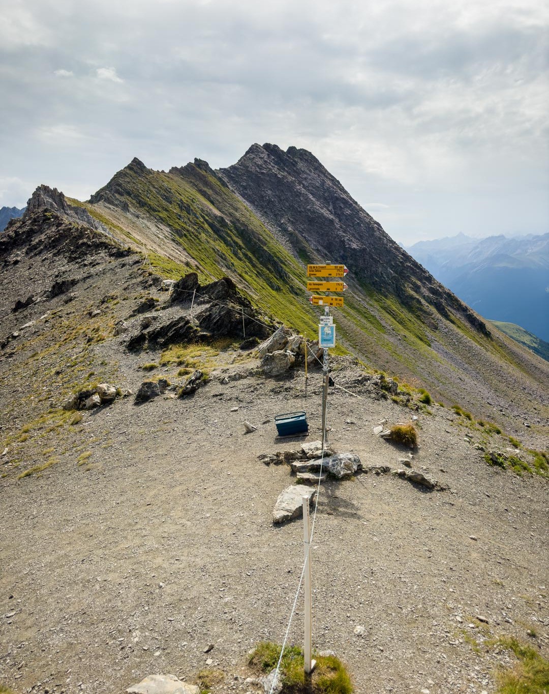 Tgapeala Cotschna ist der westlichste Gipfel im langen und exponierten Verlauf des Guggernellgrats, der sich hoch über dem Albulatal vom Sandhubel im Osten bis hin zur Furcletta im Westen erstreckt. Dem Gipfelbuch nach zu urteilen, scheinen sich nicht viele Wanderer hierher zu verirren. Dies trotz einer grandiosen Panoramaaussicht über die Gipfel der Plessurkette, das Welschtobeltal und die Gipfel auf der gegenüberliegenden Seite des Albulatals.