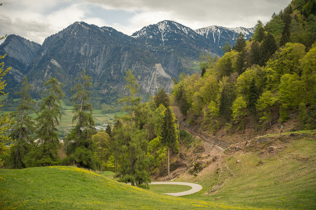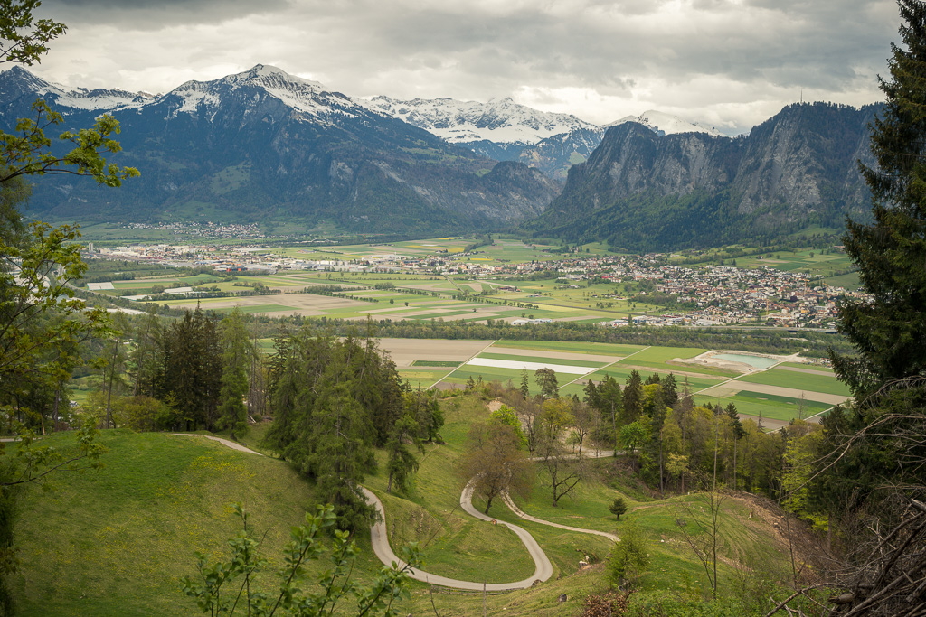 Auf breiten Alpstrassen ging es von nun an stetig und in vielen Kurven bergab bis nach Untervaz, von wo aus der Bus uns wieder nach Chur zurückbrachte. Mir ist nun klargeworden, weshalb zahlreiche Mountainbiker uns auf der Strecke entgegenkamen: in der entgegengesetzten Fahrrichtung von Untervaz nach Haldenstein kann man die Steigung gleichmässig und auf einfacherem Untergrund bewältigen, um daraufhin die Abfahrt über holprige Trails zu geniessen, während es bei meinem damaligen Ausflug genau umgekehrt war!