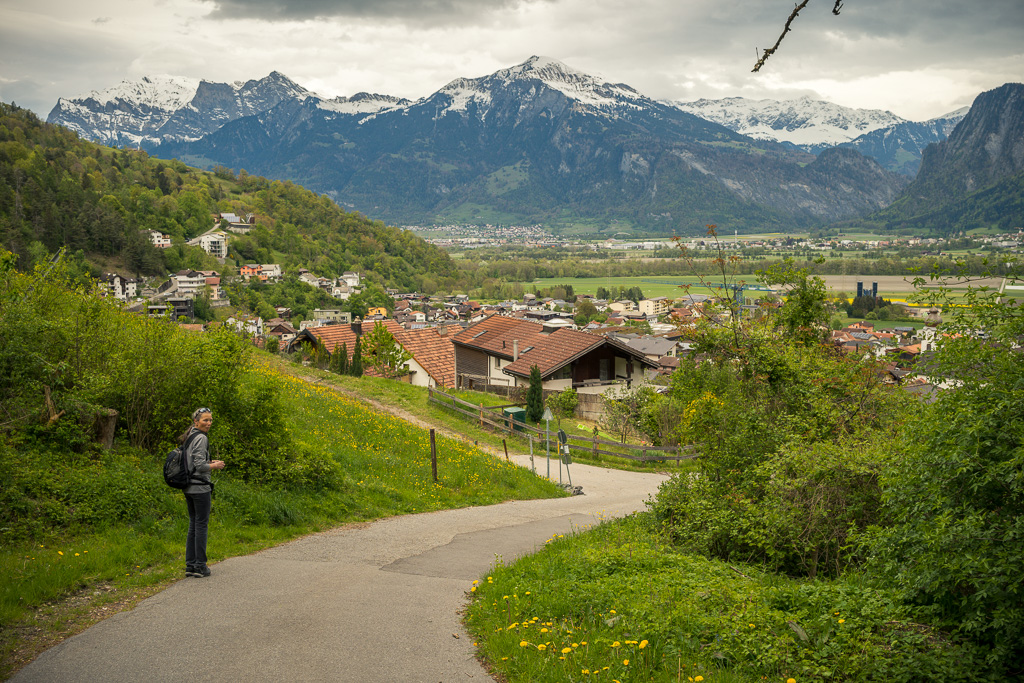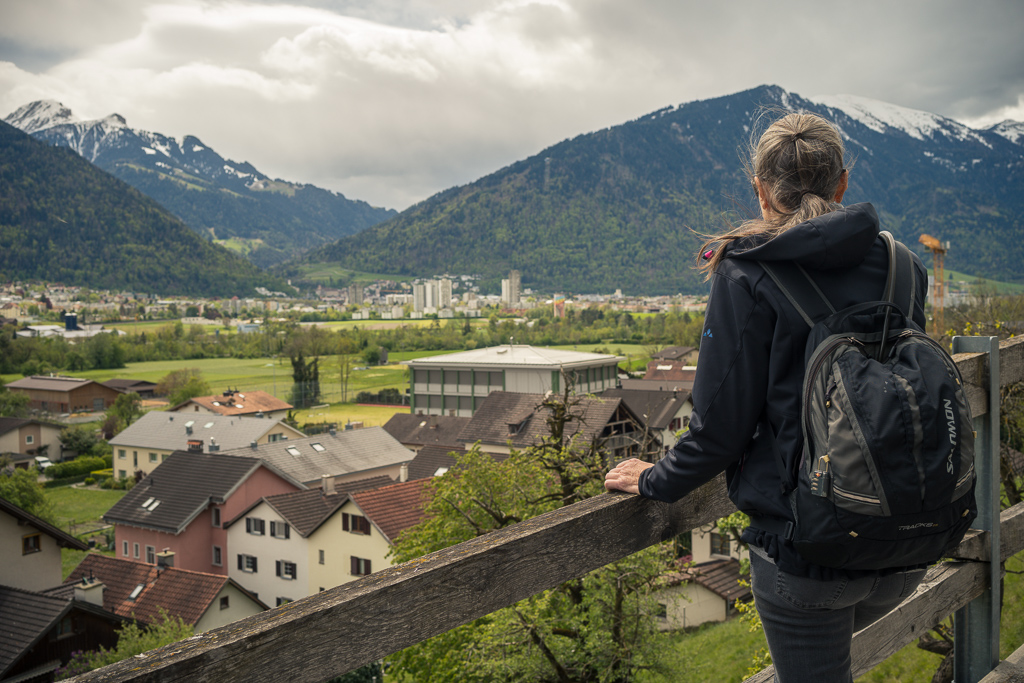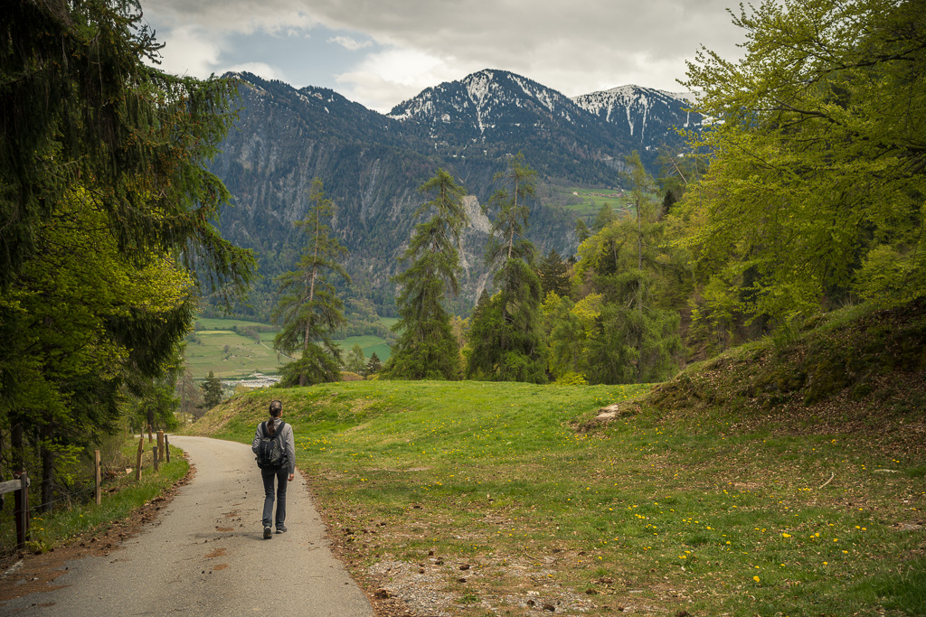 An diesem föhnigen Wochenende mit starkem und kaltem Wind in höheren Lagen bei gleichzeitig wärmeren Temperaturen im Flachland beschlossen wir, den Tag etwas tiefer unten im Rheintal zu verbringen. Ich war vor einem Monat schon auf den Hängen unter den Calandagipfeln bei Chur mit dem Gravelbike unterwegs und hatte von dort noch die schöne Aussicht auf die Bündner Herrschaft in Erinnerung. Also machten wir uns diesmal daran, den Abschnitt zwischen Haldenstein und Untervaz zu Fuss zu erwandern.
