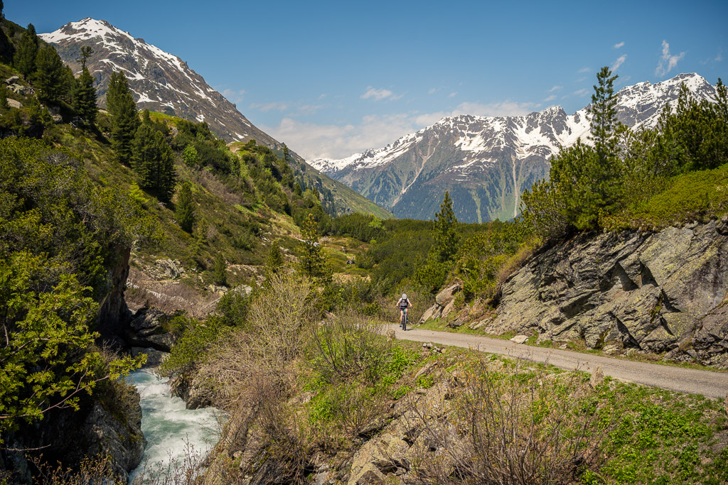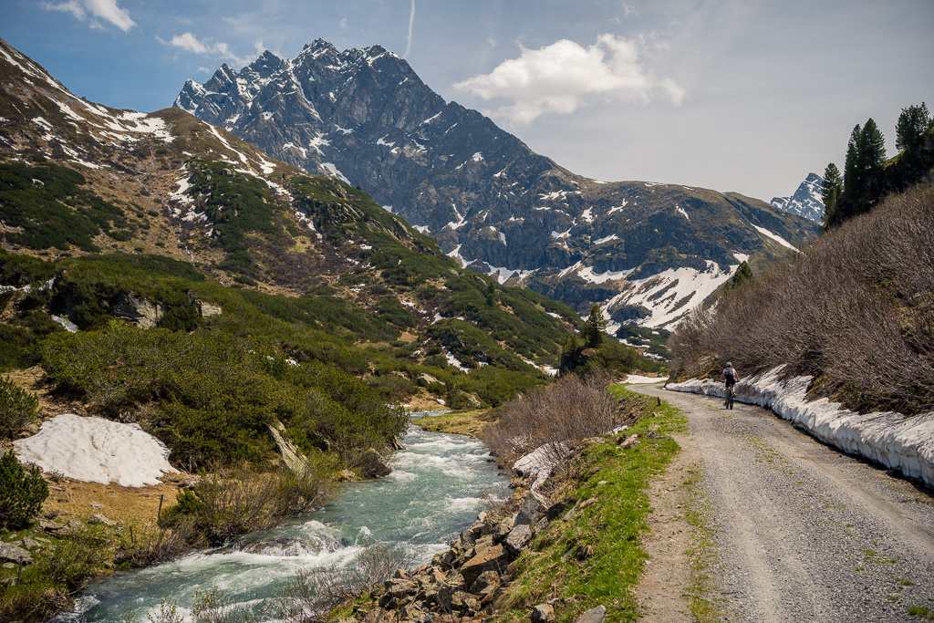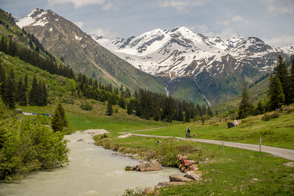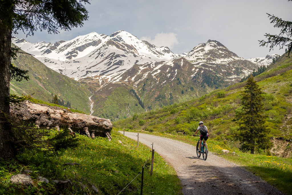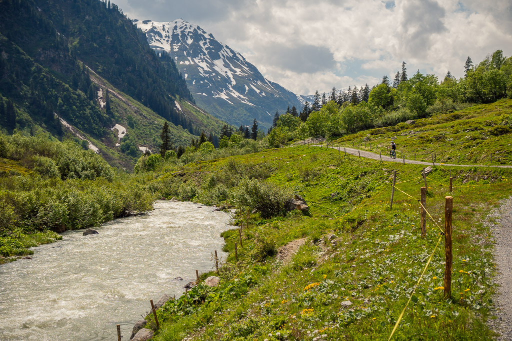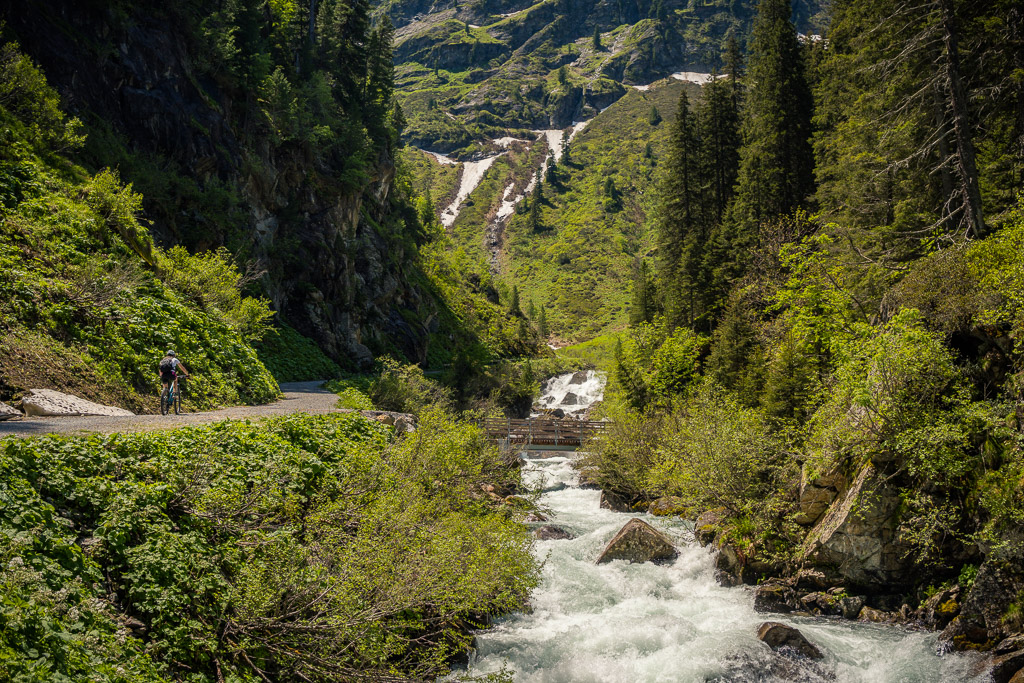 Erkundung von zwei (um diese Jahreszeit noch) einsamen Seitentälern bei Davos-Klosters mit dem Bike.