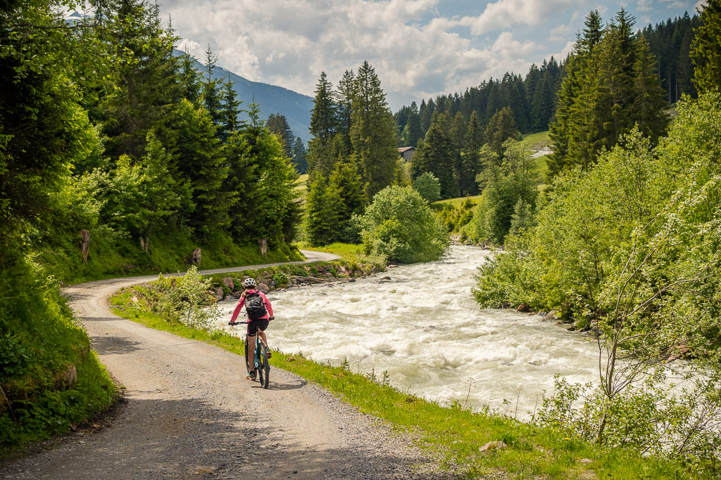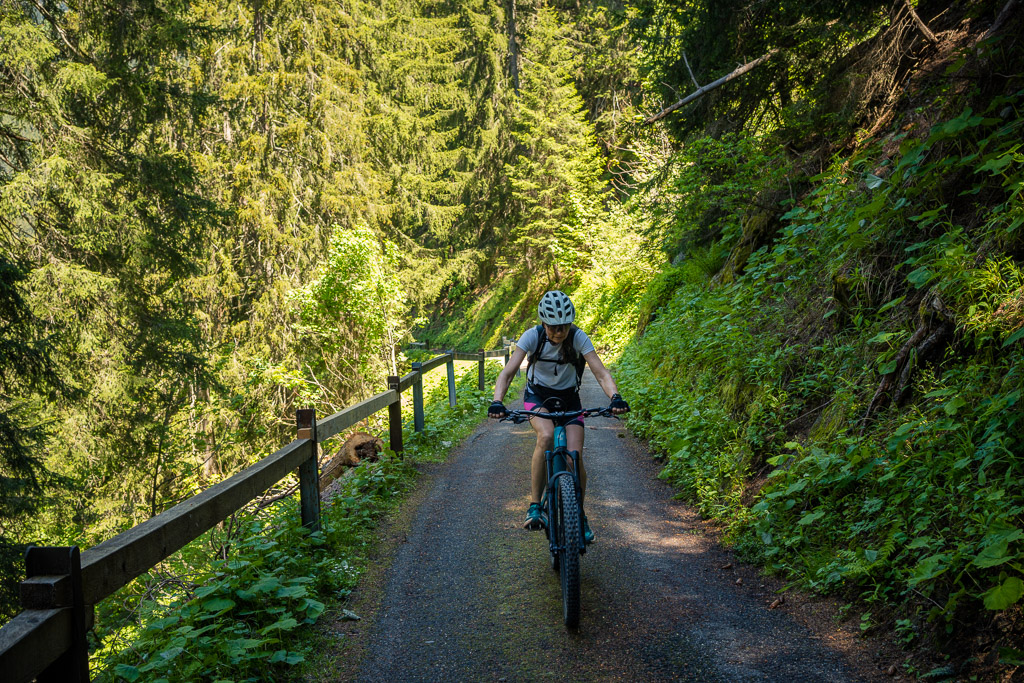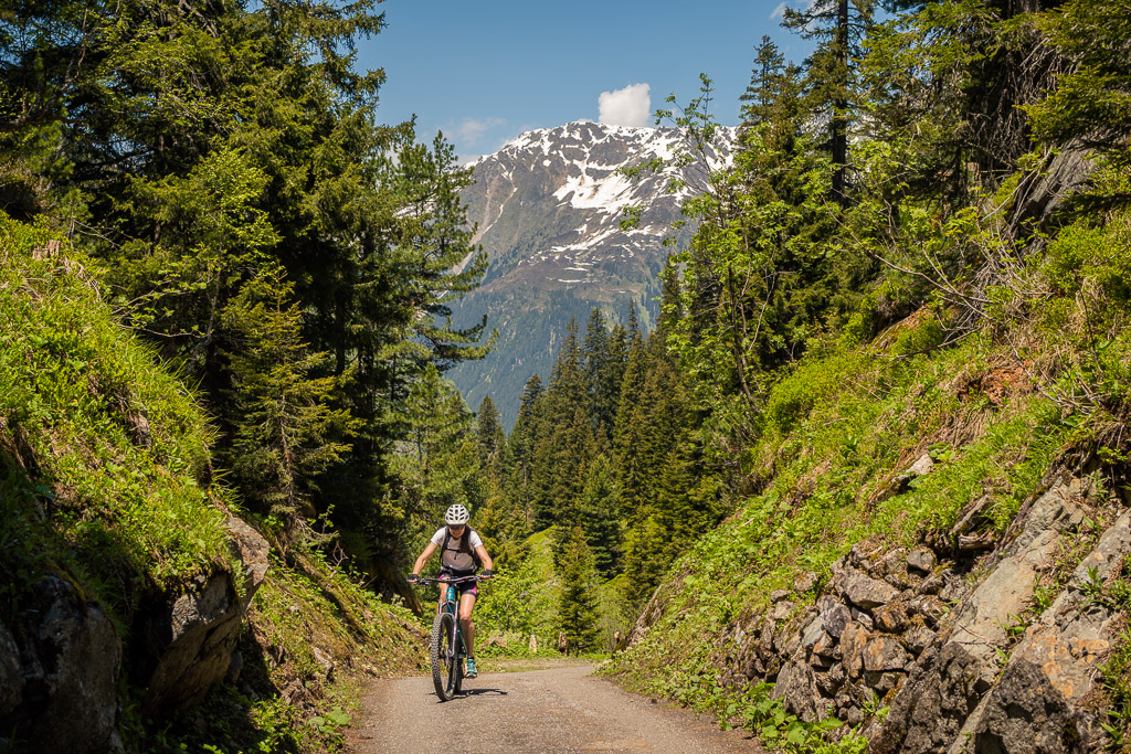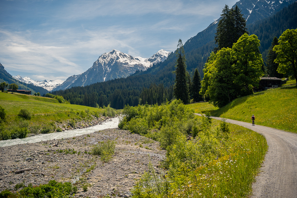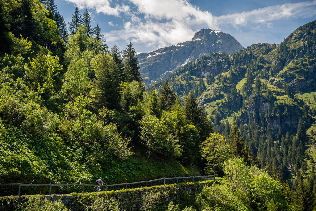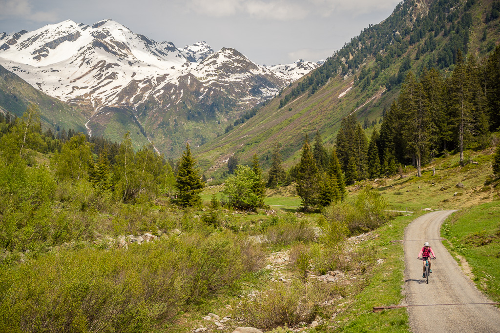 Erkundung von zwei (um diese Jahreszeit noch) einsamen Seitentälern bei Davos-Klosters mit dem Bike.