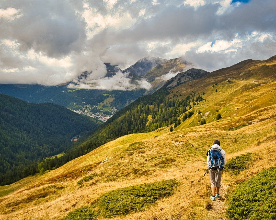 Vom Parkplatz an der Talstation der Pischabahn auf Wanderwegen an Gasthof Flüelameder vorbei zur Bergstation der Pischabahn (die Pischabahn und das Restaurant in der Bergstation sind im Sommer nicht in Betrieb).