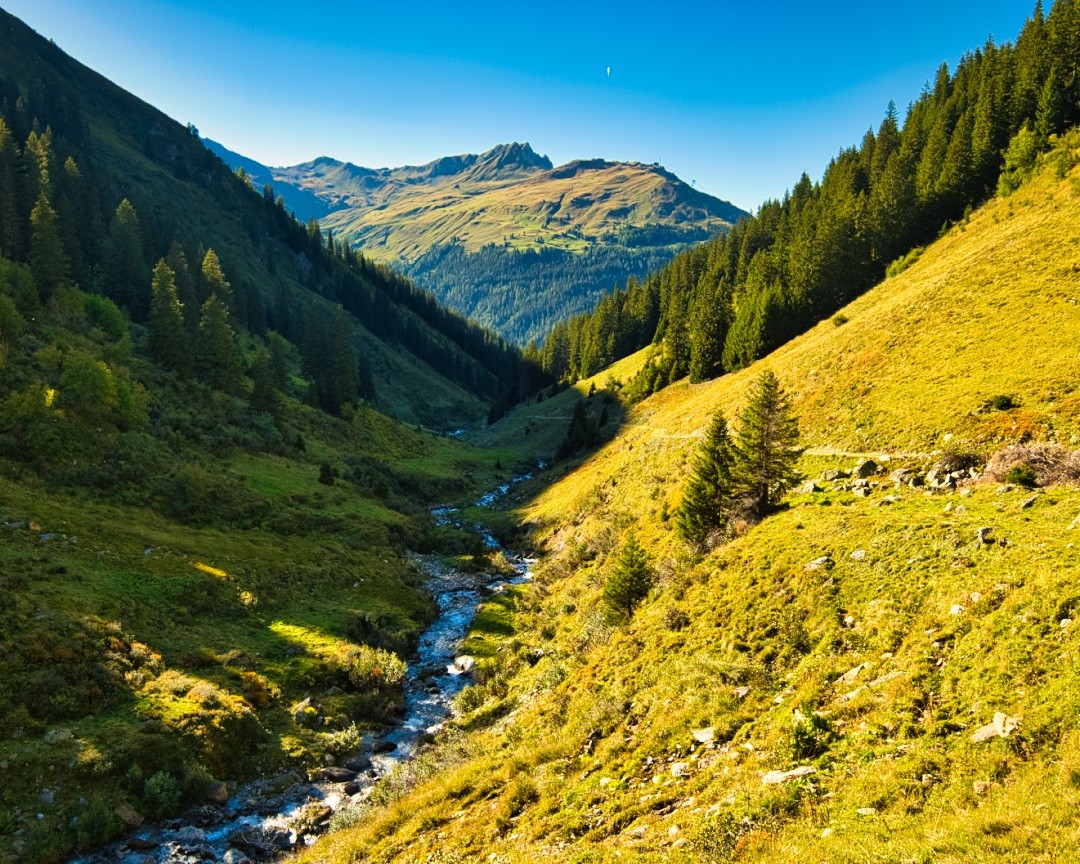Nach der Querung und dem Abstieg auf weiteren steilen Hängen über dem Talkessel der Mönchalp erreicht man die kleine Hütte von Inner Säss (Blick auf einen Wasserfall) und wandert nun lange talauswärts an Usser Säss vorbei dem Mönchalpbach entlang bis zur Einmündung beim Stützbach. Auf der anderen Bachseite weiter nach Davos Laret (Busverbindung zurück nach Davos).