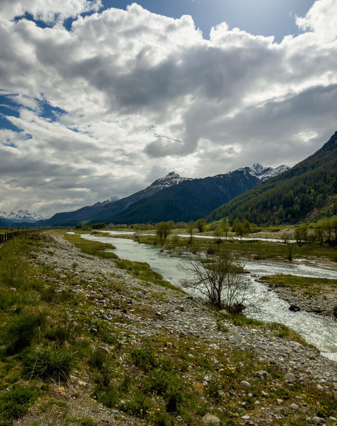 Von Filisur über Bergün und Preda zum Lai da Palpuogna und weiter zum Albulapass – einen Tag vor der offiziellen Öffnung der Passstrasse. Demzufolge kein Verkehr und eine spektakuläre Abfahrt nach La Punt ins Engadin an unzähligen pfeifenden Murmeltieren vorbei. Weiter dem Inn entlang nach Samedan.