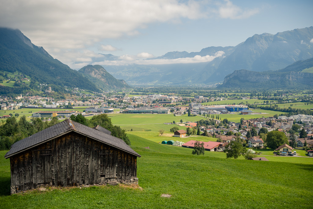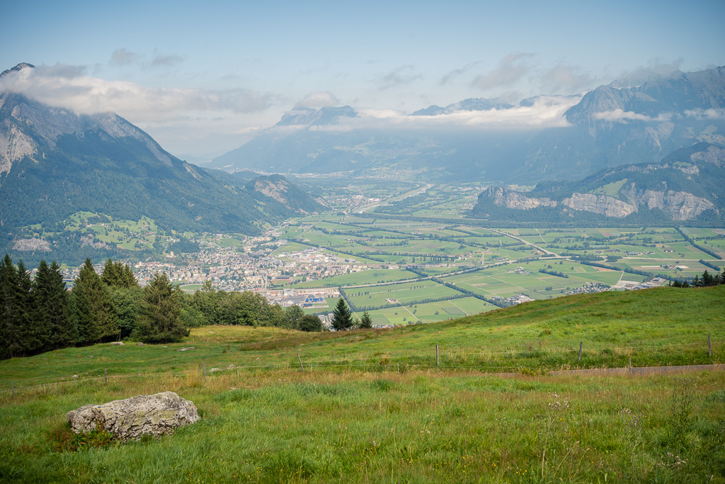 Durch Seitengassen am südlichen Dorfrand von Bad Ragaz, am Waldrand entlang und anschliessend über offene Felder rollten wir zunächst auf den Ebene des Rheintals nach Vilters. Etwas seltsam mutete der kleine Sportflughafen von Bad Ragaz an, wo wir das nicht weiter abgesperrte Flughafengelände und die Rollbahn am Pistenende überquerten.