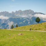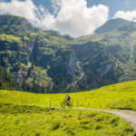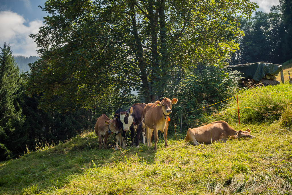 Von Vilters ging es weiter nach Wangs, wo unser Aufstieg begann. An der Talstation der Pizolbahn vorbei (hier waren wir letztmals bei unserer 5-Seen-Wanderung im Jahr 2018) fuhren wir zunehmend angestrengt hoch über Fontanix nach Monteplon, wo wir auf die von Mels her kommende Strasse ins Weisstannental trafen. Wir folgten dieser bis zum Taleingang und zu einer Abzweigung vor Langwisen. Hier begann ein langgezogener Aufstieg auf einem Schotterweg über rund 600 Höhenmeter – zum Glück oft durch den Wald – zur Unteren Prechtalp. Von hier aus schlängelte sich die Alpstrasse in mehreren Kurven nochmals 300 Hm hinauf bis zur Oberen Prechtalp und wenig später am Fuss imposanter Felswände vorbei zur Alp Gamidaur. Hier hatten wir auch den höchsten Punkt der ganzen Tour erreicht.