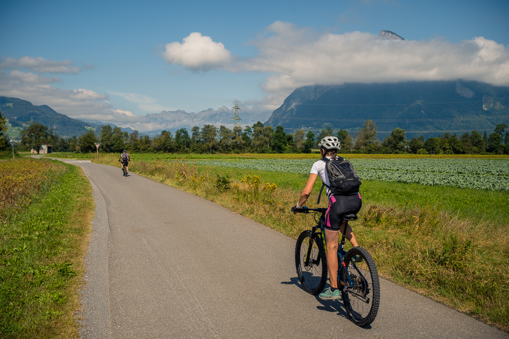 Für diese Tour liehen wir – wie schon bei der erwähnten Tour ins Calfeisental – ein E-Bike für Susanne bei der E-Bikestation Bad Ragaz aus, während ich mit meinem eigenen Mountainbike aufkreuzte. Ich hatte mir zuhause noch überlegt, das leichtere Gravelbike statt des MTB mitzunehmen und dies in letzter Minute dann doch wieder verworfen. Ein Entscheid, den ich während der Tour mehrmals bereute, um ihn bald darauf doch wieder sehr zu begrüssen.