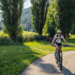 Der letzte Teil der Tour war dann noch ein schöner Genuss zum Ausrollen. Wir erreichten die von Valens her kommende Hauptstrasse, überquerten die Taminaschlucht auf der langen Taminabrücke, bogen auf der anderen Seite ins Dorfzentrum von Pfäfers ab und kehrten in einer zügigen Abfahrt zum Ortseingang von Bad Ragaz zurück. Nach einem kurzen Boxenstopp im Supermarkt landeten wir wieder in nobler Gesellschaft zwischen Golfspielern und den Gästen des Grand Hotel Bad Ragaz bei der E-Bikestation, wo wir das E-Bike abgaben und uns erschöpft, aber glücklich auf dem Heimweg machten.