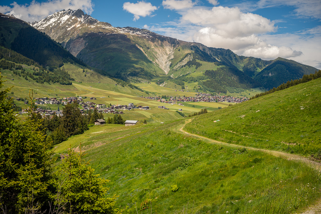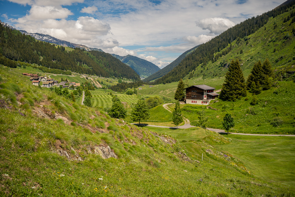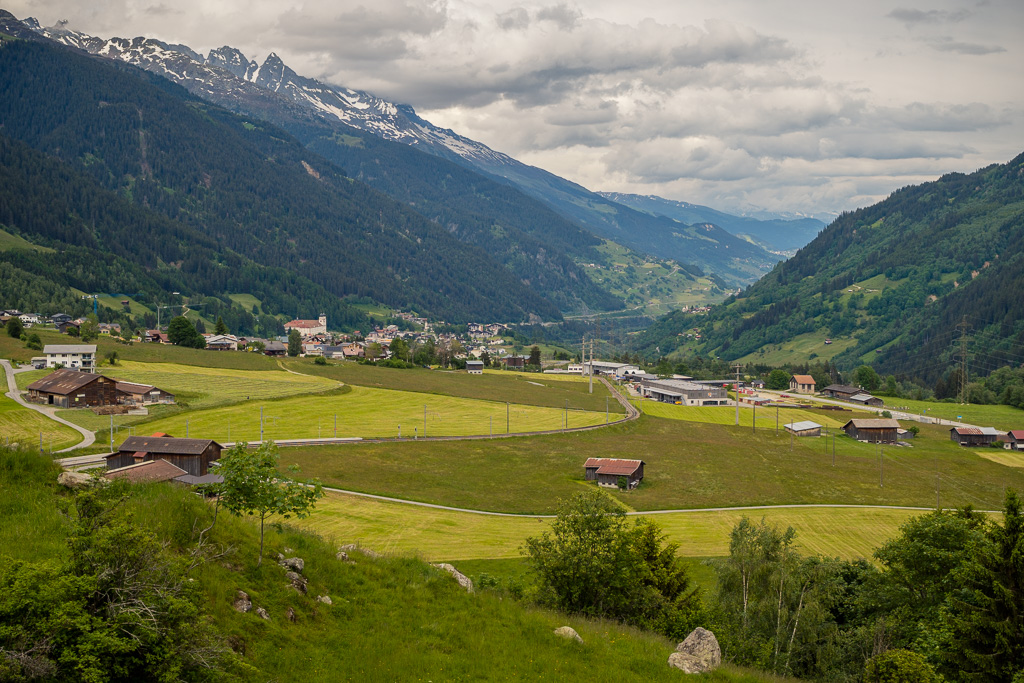 Vor Ort erschien es am einfachsten, von Foppas ins nahe gelegene Sedrun zu fahren, dort wieder der Hauptstrasse über drei Kilometer zu folgen, bei nächster Gelegenheit dann ins Dorf Mumpé Tujetsch weiter oben am Hang über der Strasse abzubiegen und dem Hang entlang auf Nebenwegen über Segnas nach Disentis zu fahren. Rückblickend hätte es vom Schreibtisch aus gesehen eventuell noch bessere Alternativen gegeben, aber die werde ich mir wohl für ein nächstes Mal aufsparen müssen. Auch so war die restliche Strecke nach Disentis aber sehr idyllisch und ich kam bald wieder beim Startpunkt an, frisch ausgeruht für die erneute endlose Rückfahrt nach Hause.