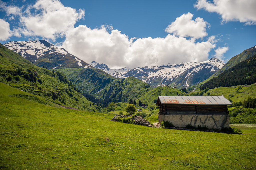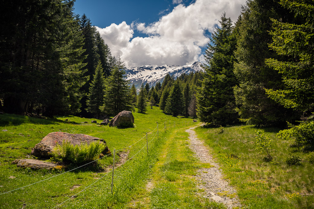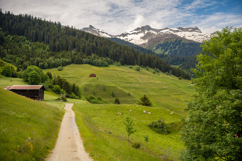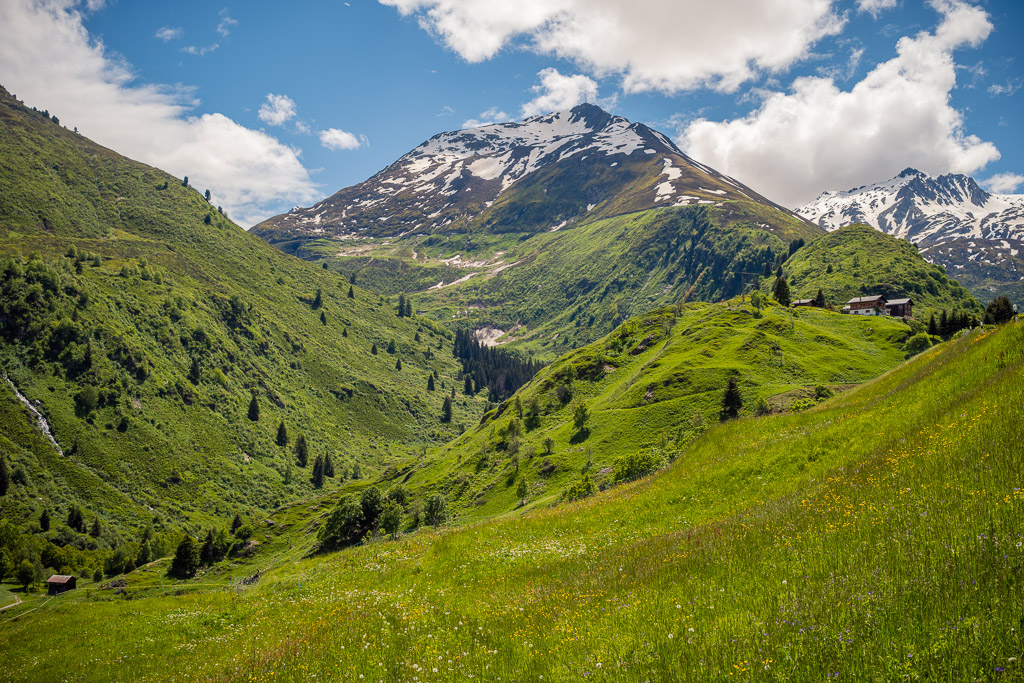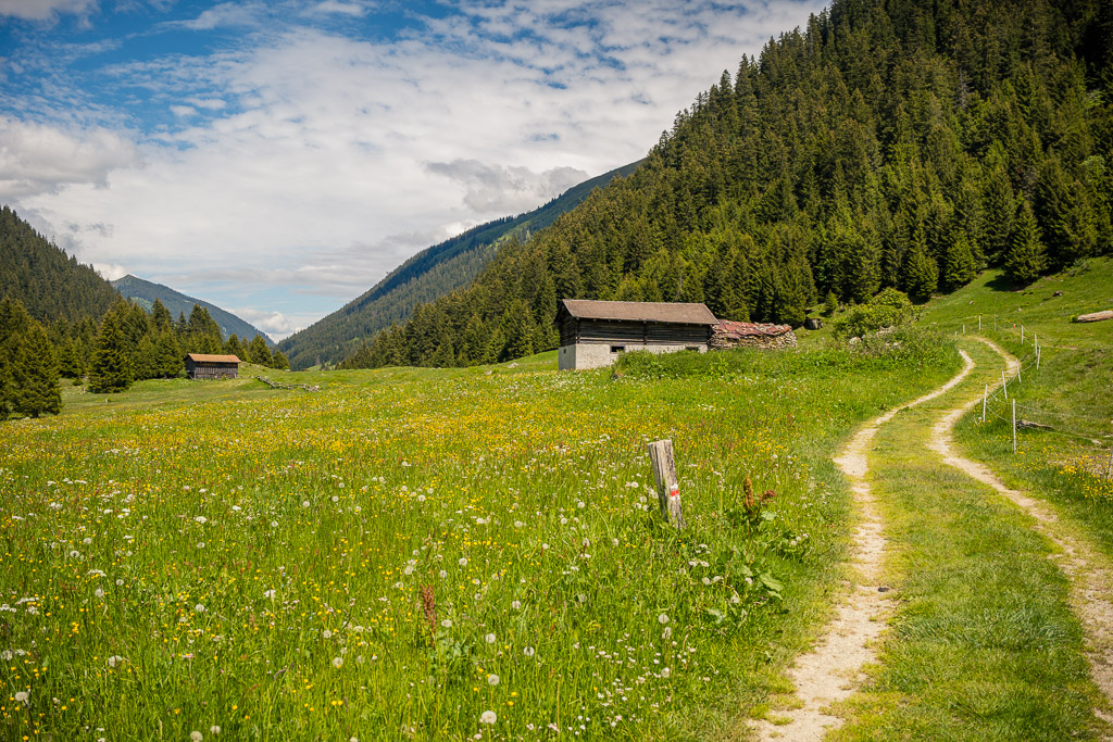 Bei Foppas hätte meine geplante Route in einem weiten Bogen ins entlegene Tal von Nalps hinauf und auf der anderen Seite dem Hang entlang über weite Strecken abseits der Zivilisation nach Mumpé und Disentis zurückgeführt. «Hätte», da sich einen Kilometer später im Tal von Nalps herausstellte, dass die Brücke über den Rein da Nalps bis Anfang Juli vollständig und ohne Umgehungsmöglichkeit wegen Bauarbeiten gesperrt war. So blieb mir nichts anderes übrig, als aus dem Tal heraus wieder nach Foppas zurückzufahren und mir dort eine neue Streckenvariante zu suchen.