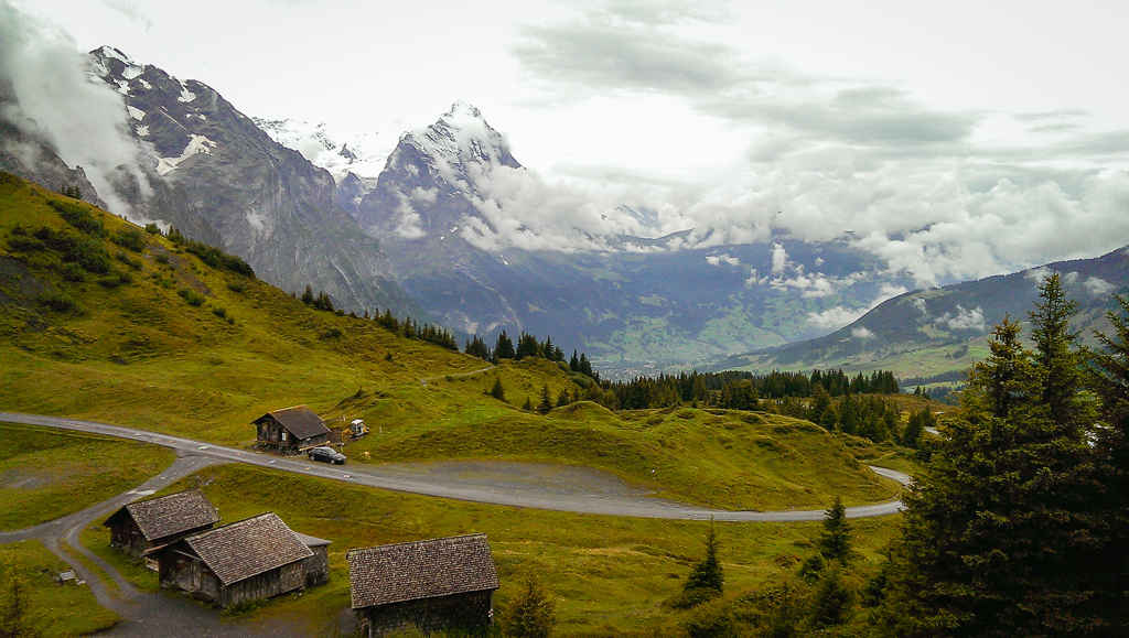Von Grindelwald auf der Alpstrasse zur Grossen Scheidegg. Weiter in Richtung First auf einem schönen Höhenweg weiter bis zur Seilbahnstation Schreckfeld (Restaurant). Von hier steile Abfahrt über Bort zurück nach Grindelwald.