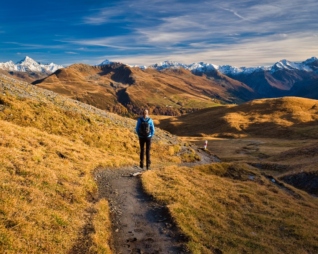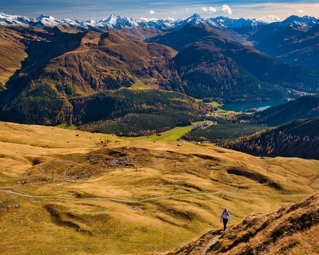 Aufstieg von Davos Laret über die Schwarzseealp nach Gotschna und weiter am Grünhorn und Casanna vorbei zum Weissfluhjoch. Durchs Haupter Tälli und auf dem Felsenweg zum Strelapass, von dort hinab nach Davos Platz.