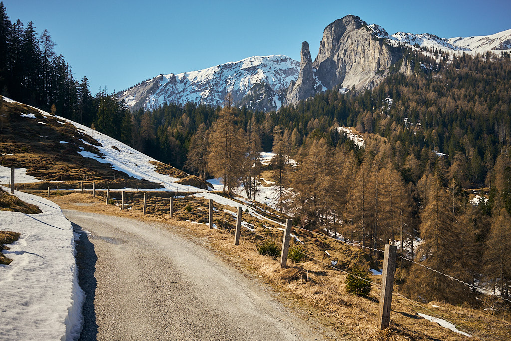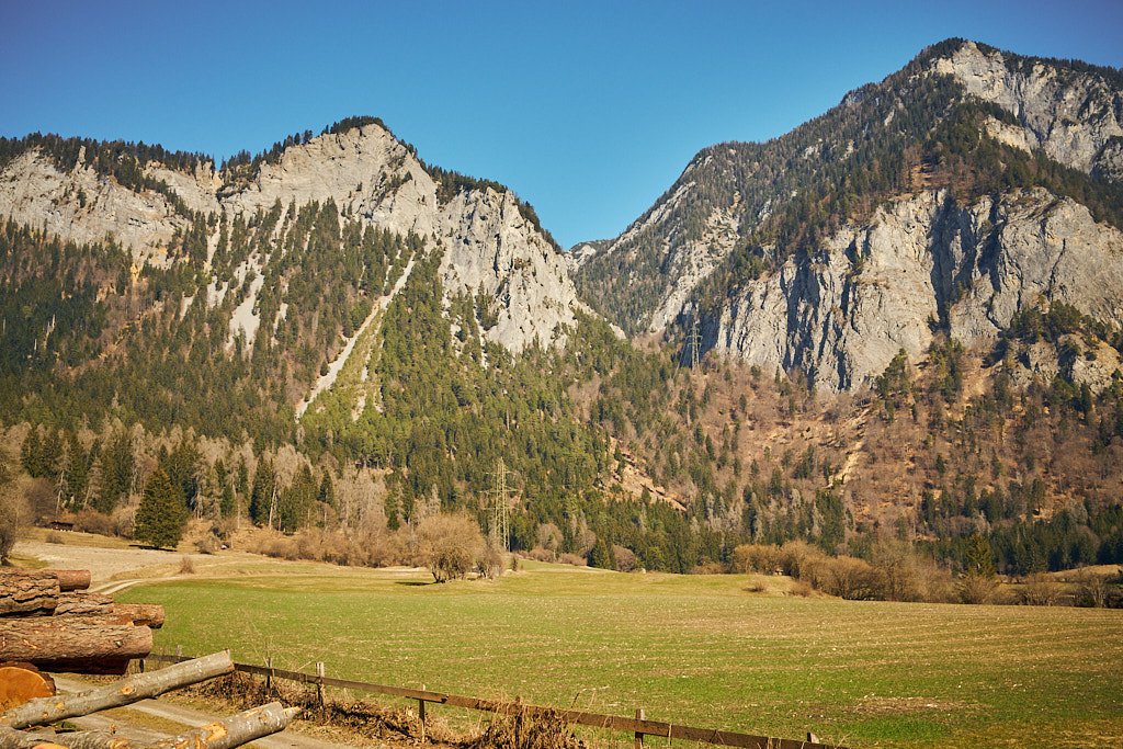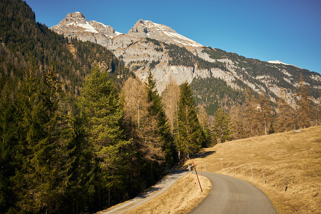 Abgesehen vom Gegenwind war das sonnige Wetter heute aber traumhaft. Auf meiner kürzlichen ersten Kunkelspass-Tour in diesem Jahr hatte ich nicht soviel Glück. Die Landschaft (und auch die Kleidung der heute zahlreichen Biker und Wanderer) ist in der Zwischenzeit wieder ein Stück frühlingshafter geworden. Trotzdem verzichtete ich diesmal auf mögliche Begegnungen mit der Schneegrenze und fuhr hinter Vättis über Pfäfers ins Rheintal.