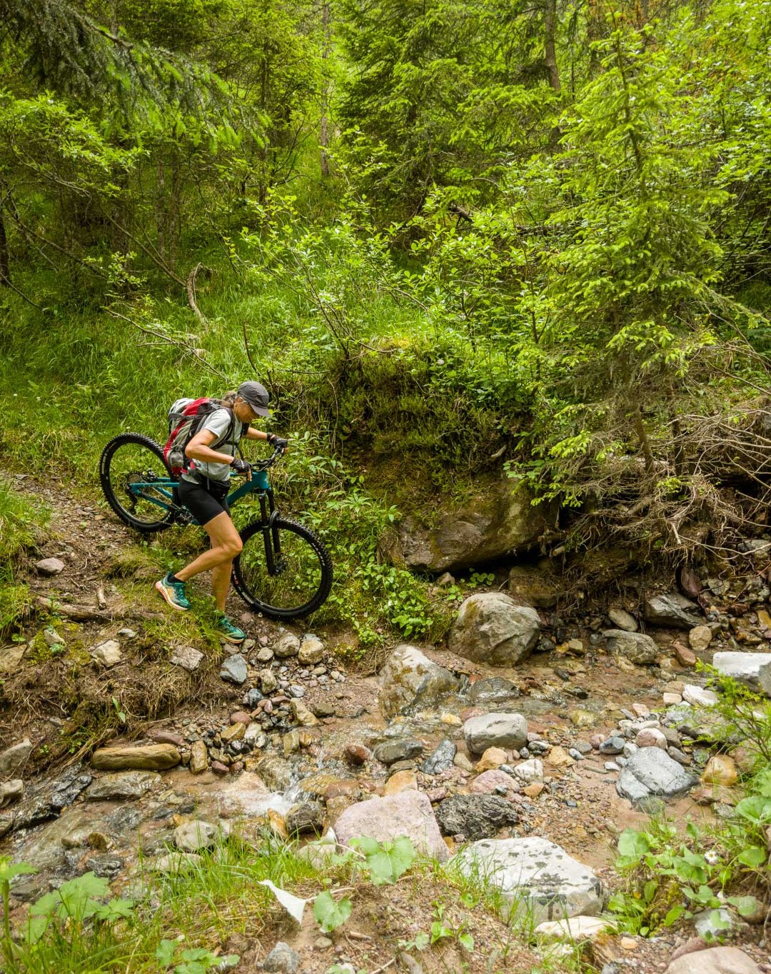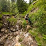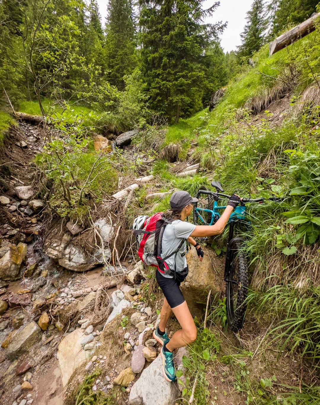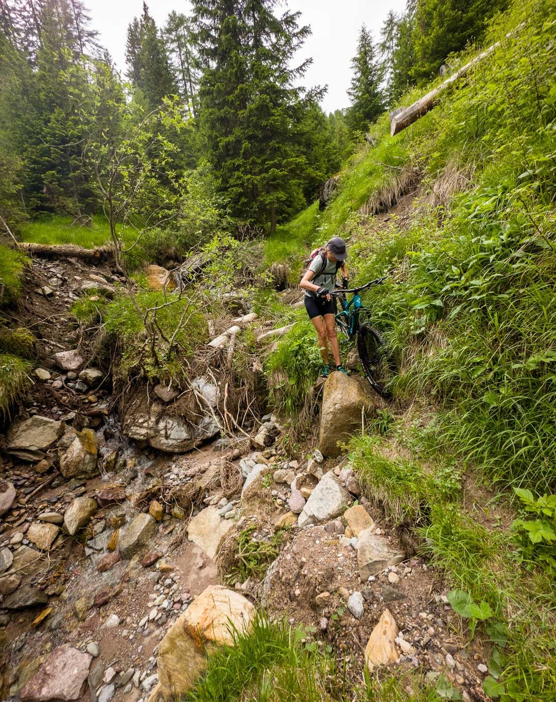 Bikeabfahrt von der Wiesner Alp durchs Tieftobel nach Davos Wiesen. Zahlreiche Hindernisse aufgrund von vergangenen Regenfluten waren zu überwinden.