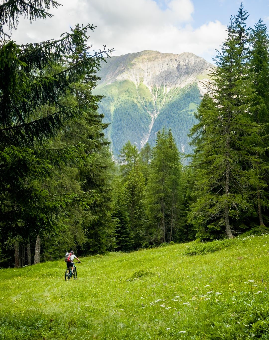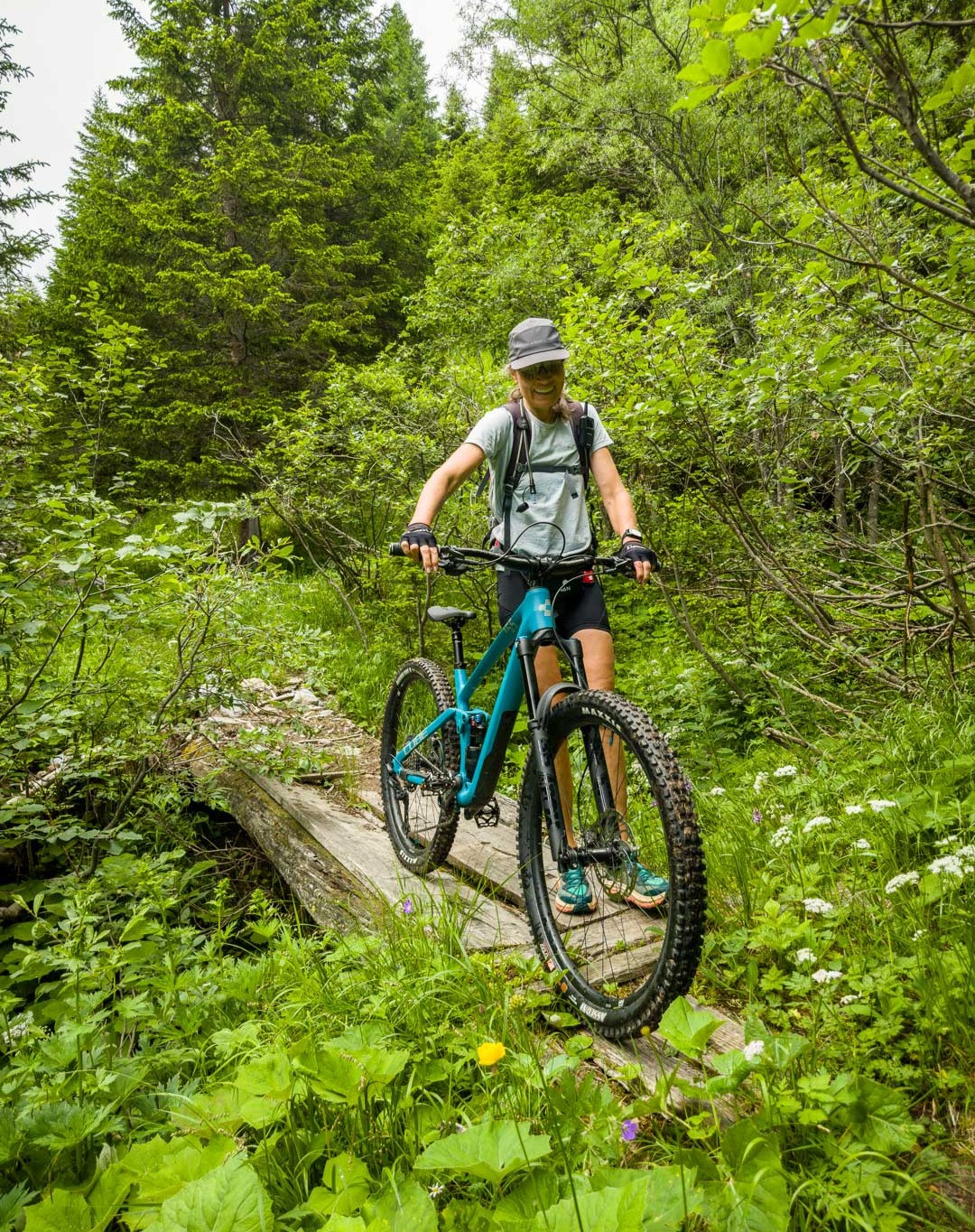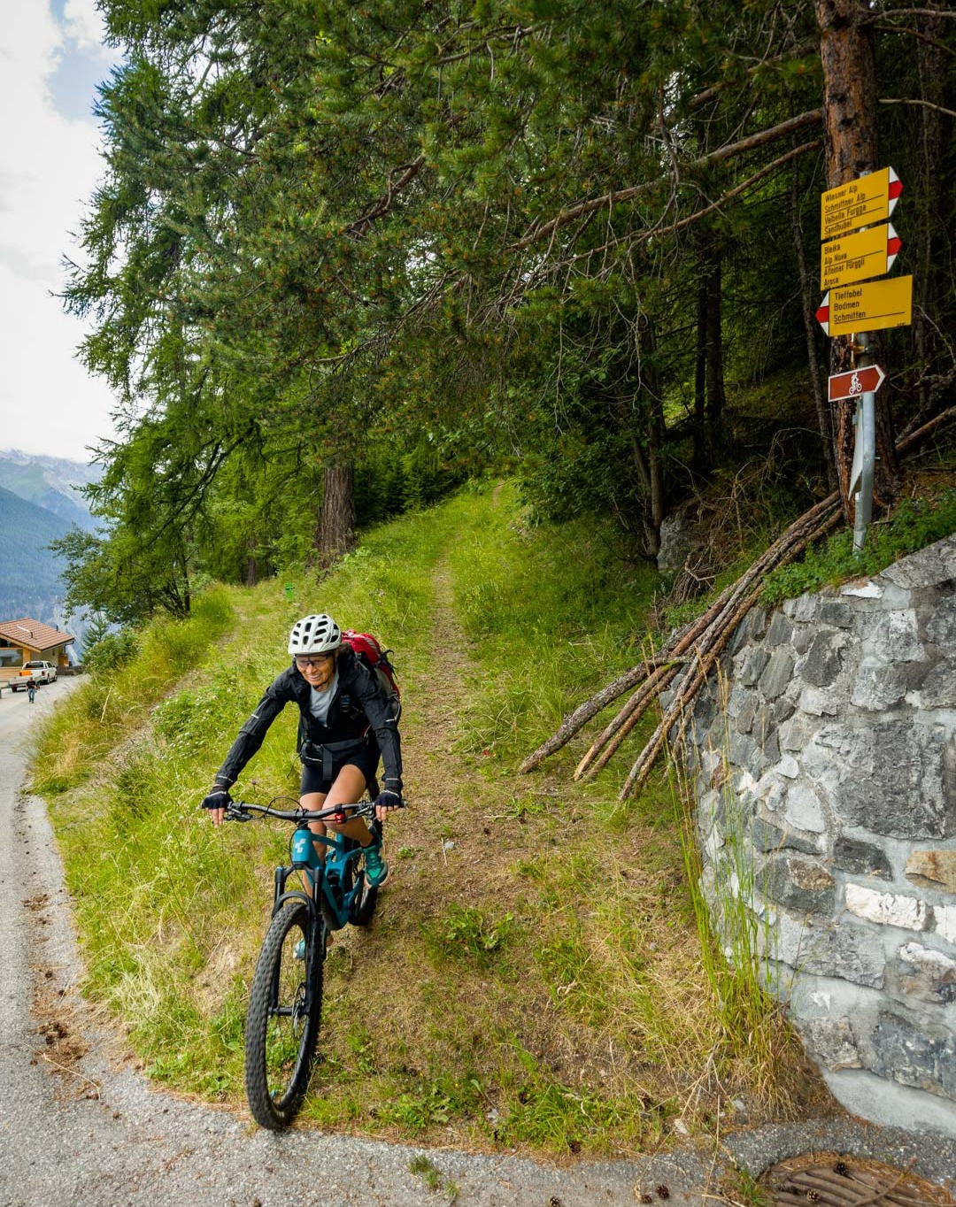 Bikeabfahrt von der Wiesner Alp durchs Tieftobel nach Davos Wiesen. Zahlreiche Hindernisse aufgrund von vergangenen Regenfluten waren zu überwinden.