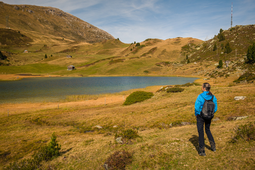 Von der Postautohaltestelle «Sufer (Unterem Dorf)» an der Autobahnausfahrt den Wegweisern folgend ins Dorf und in Richtung Lai da Vons. Der Weg steigt durch den Dorfwald zu den Ferienhütten von Foppa auf und kreuzt dabei mehrmals die asphaltierte Alpstrasse. Ab P.1930 wandern wir noch ein Stück auf der Alpstrasse, bevor wir den Wanderweg zum Lai da Vons über einen kleinen Bach und einen Holzsteg wieder erreichen. Etwas später wird der Blick auf den See erstmals frei. Wir passieren ihn in einiger Entfernung auf seiner östlichen Seite, wobei sumpfiges Gras den Wanderweg vom eigentlichen Ufer trennt.