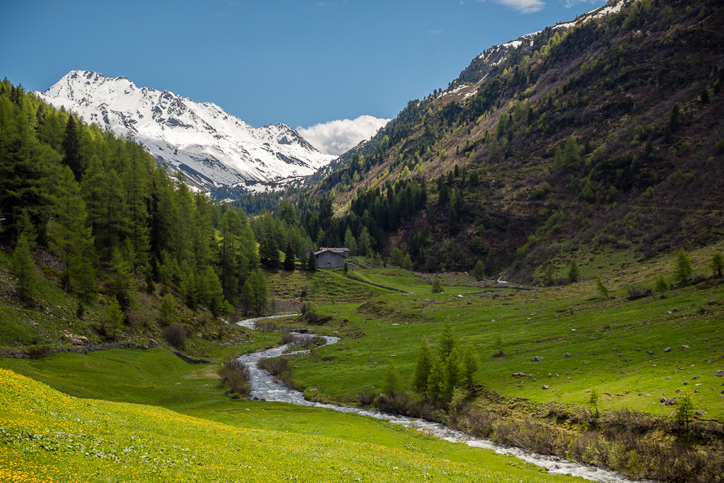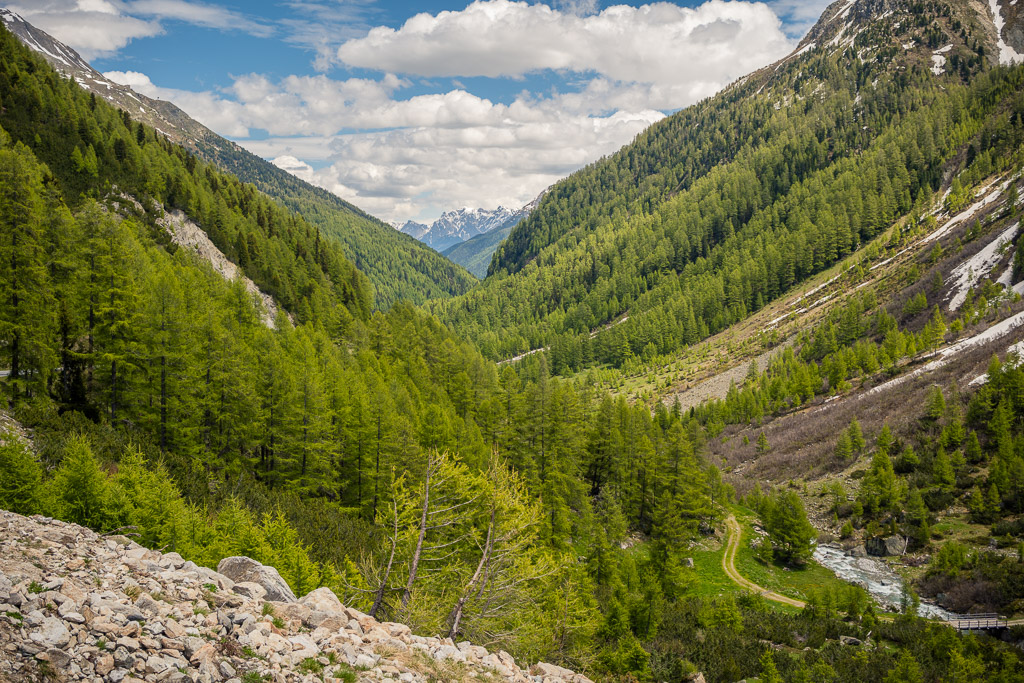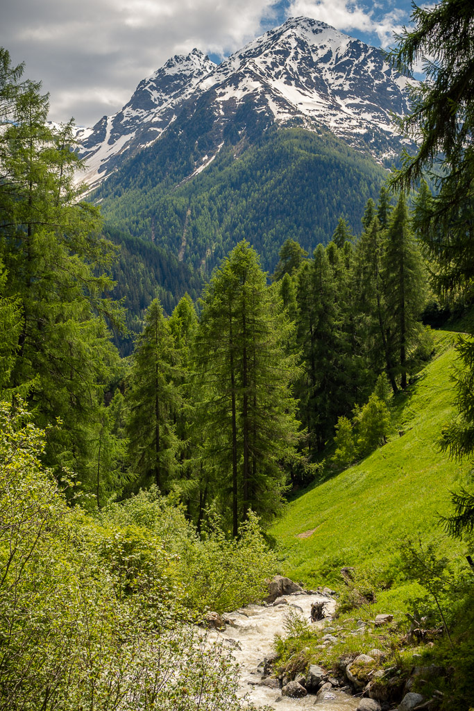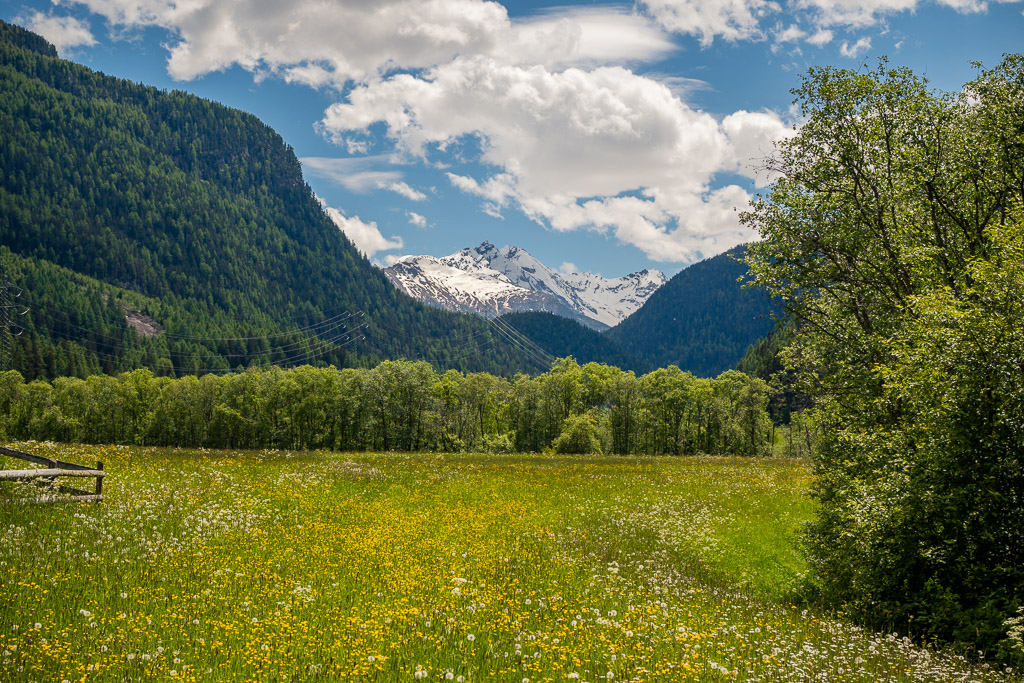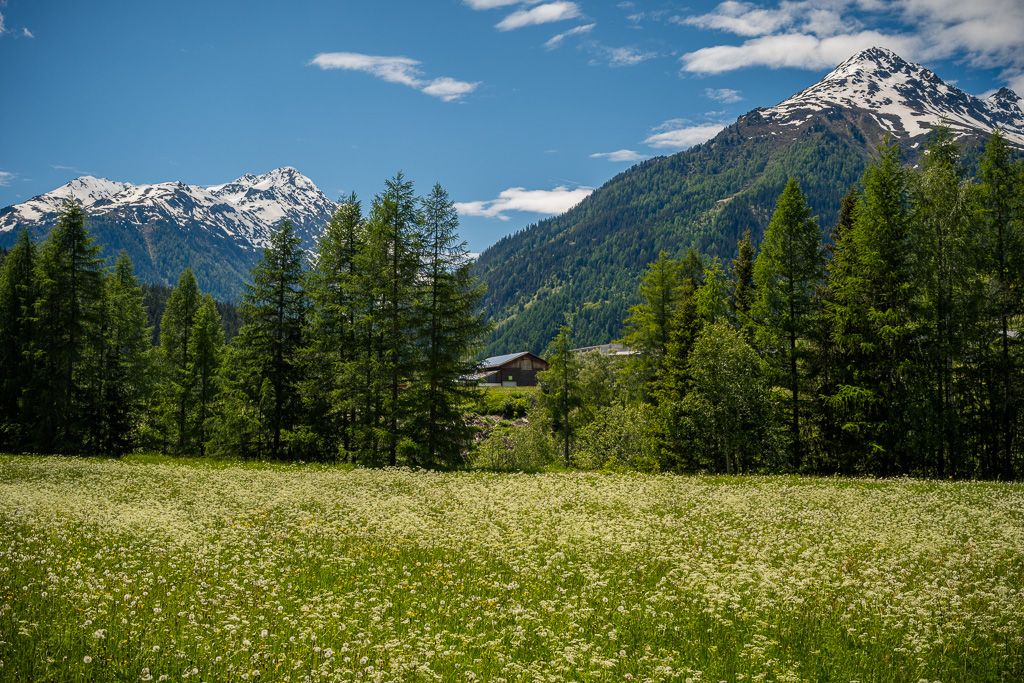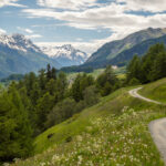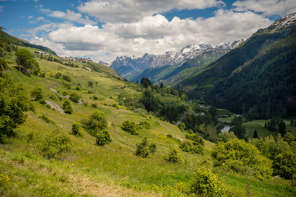 Von Susch aus ging es abseits des Autoverkehr zunächst auf dem Inn-Radweg über Feldwege im Talboden entlang der Inn flussabwärts. Bei Lavin wechselte der Weg auf die nördliche Talseite und stieg in der Folge rund 250 Höhenmeter an, sodass man mit zunehmender Höhe immer neue Ausblicke auf das Inntal geniessen konnte. Durch die wunderschönen Dörfer von Guarda, Bos-cha und Ardez mit ihren alten Dorfkernen fuhr ich weiter bis nach Ftan, dem höchsten Dorf auf meiner Route.