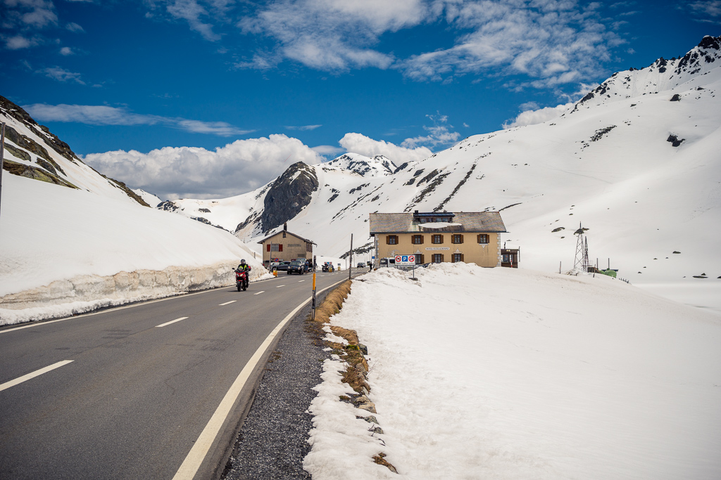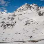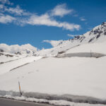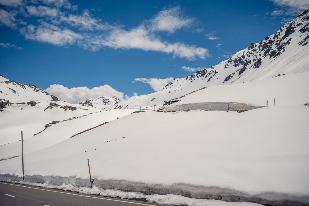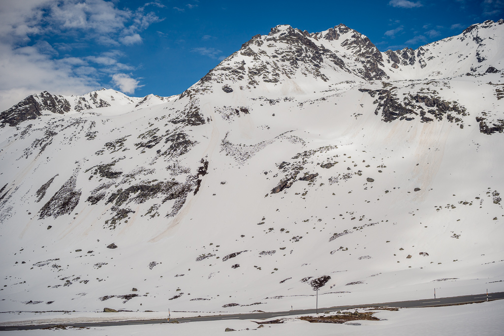 Von Davos Frauenkirch fuhr ich zunächst über Davos Platz nach Davos Dorf, wo die Strasse zum Flüelapass begann. Es ging relativ flüssig bergauf und ich erreichte den noch tief verschneiten Pass ohne grössere Schwierigkeiten. Oben war es ziemlich kalt und windig, sodass ich auf der Passhöhe sofort eine Jacke anzog und mich auf die Abfahrt nach Susch machte.